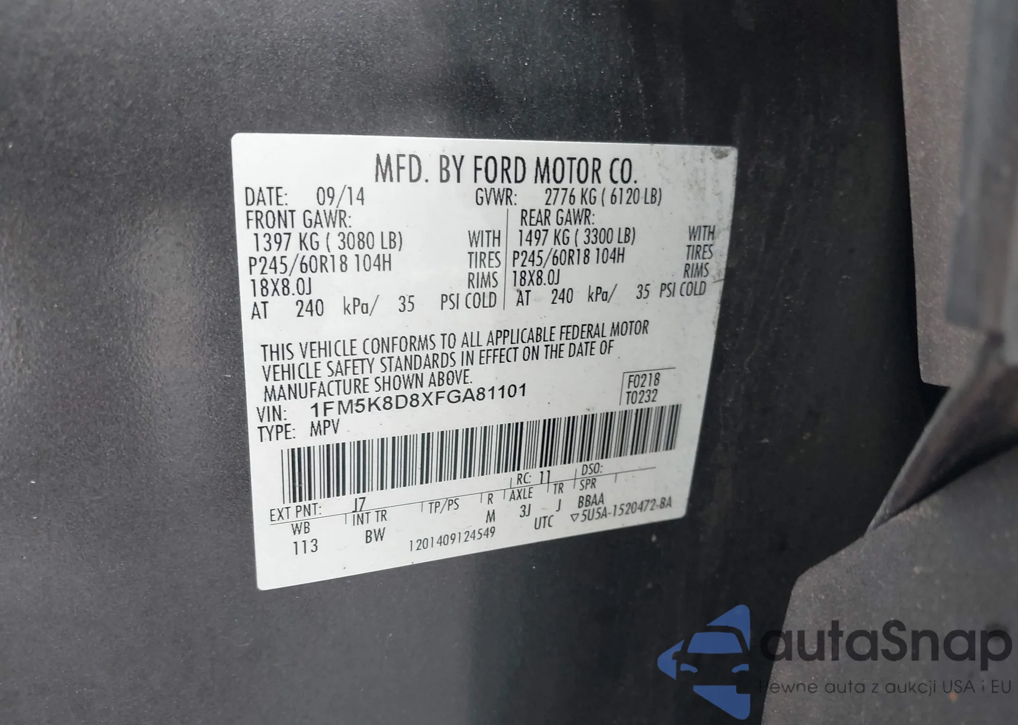 VIN: 1FM5K8D8XFGA81101