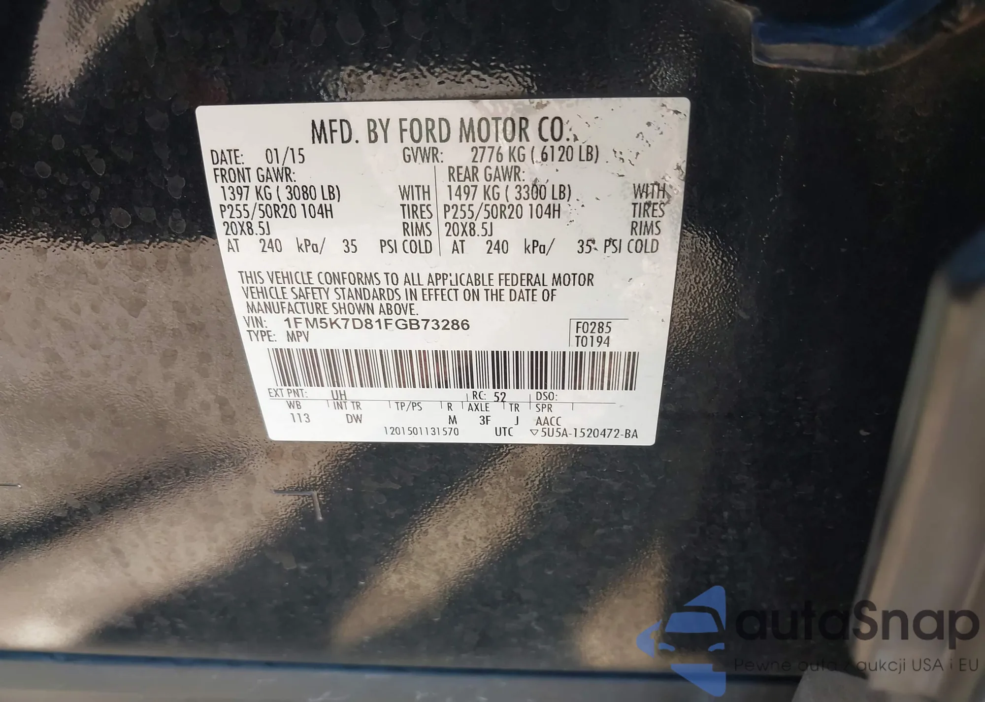 VIN: 1FM5K7D81FGB73286