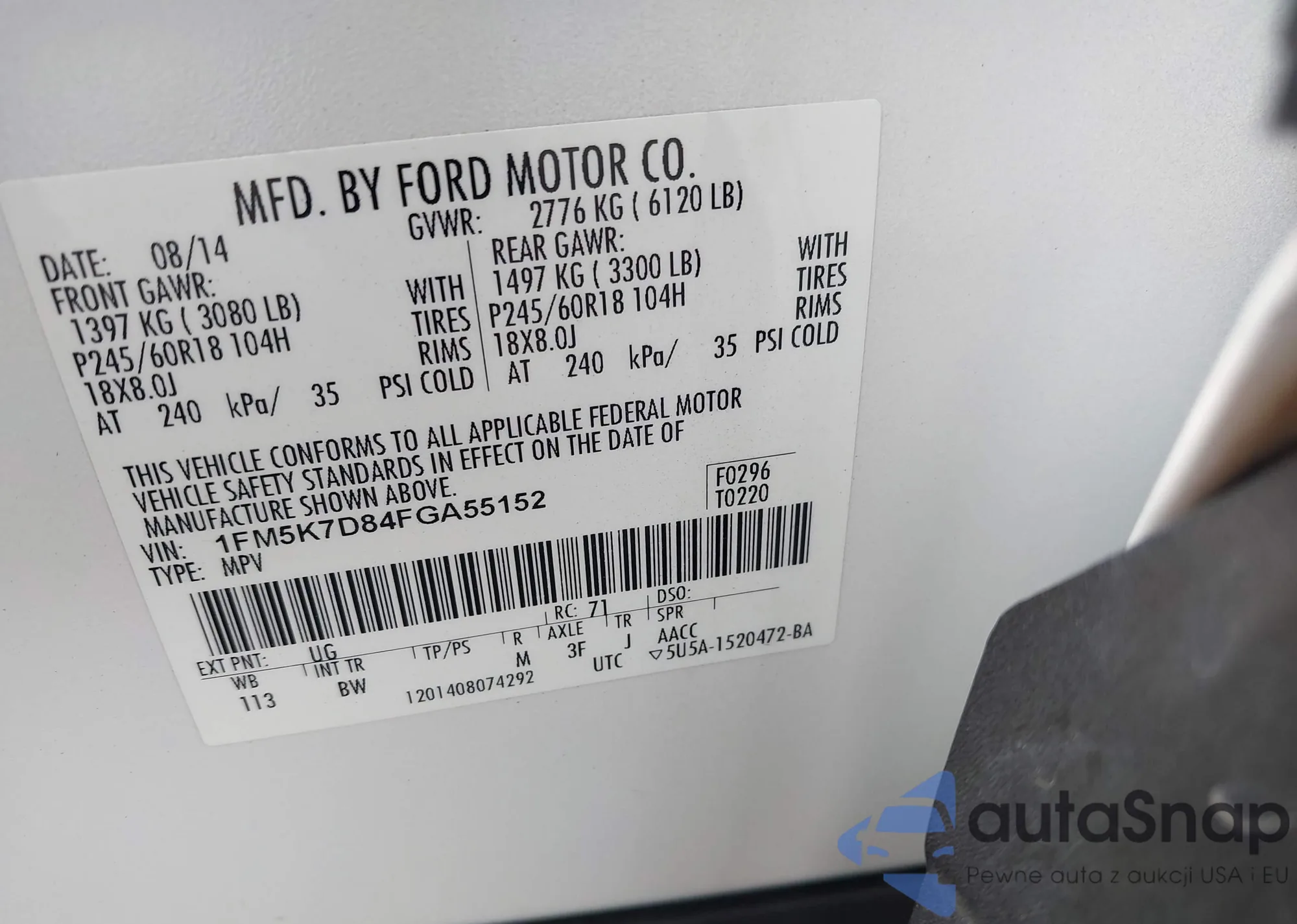 VIN: 1FM5K7D84FGA55152
