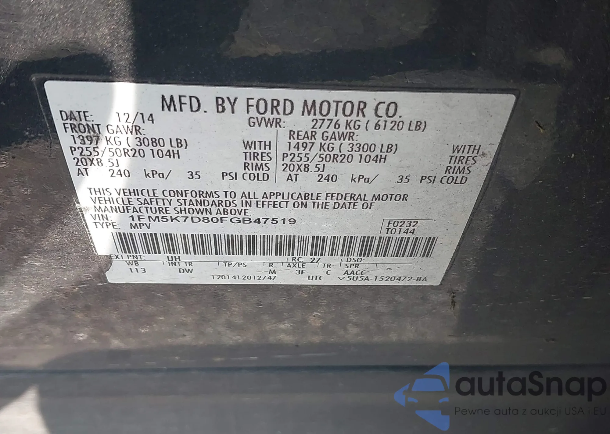 VIN: 1FM5K7D80FGB47519