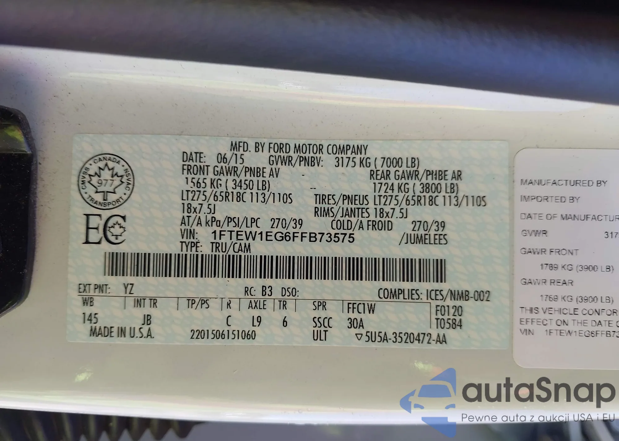 VIN: 1FTEW1EG6FFB73575