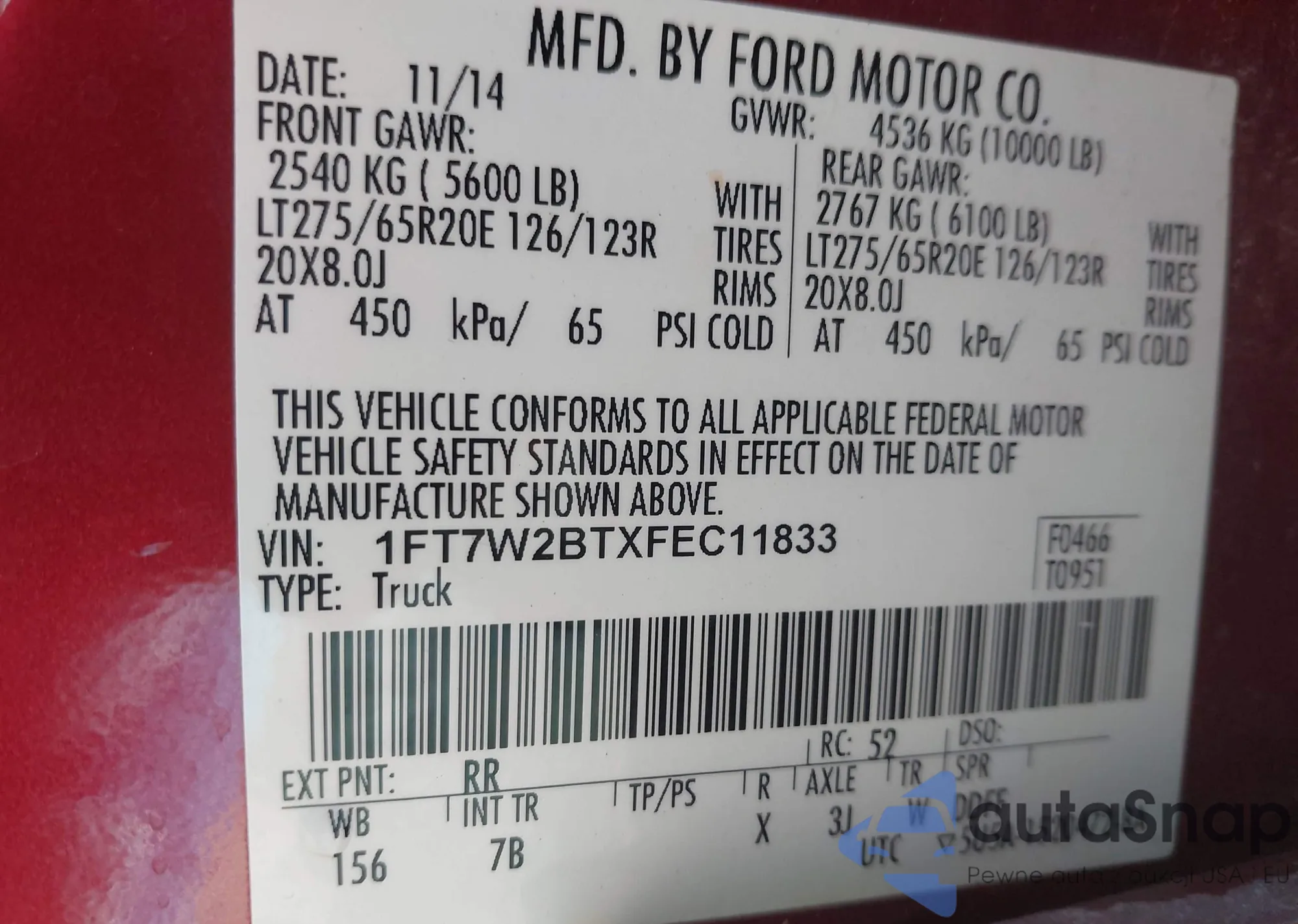 • VIN: 1FT7W2BTXFEC11833