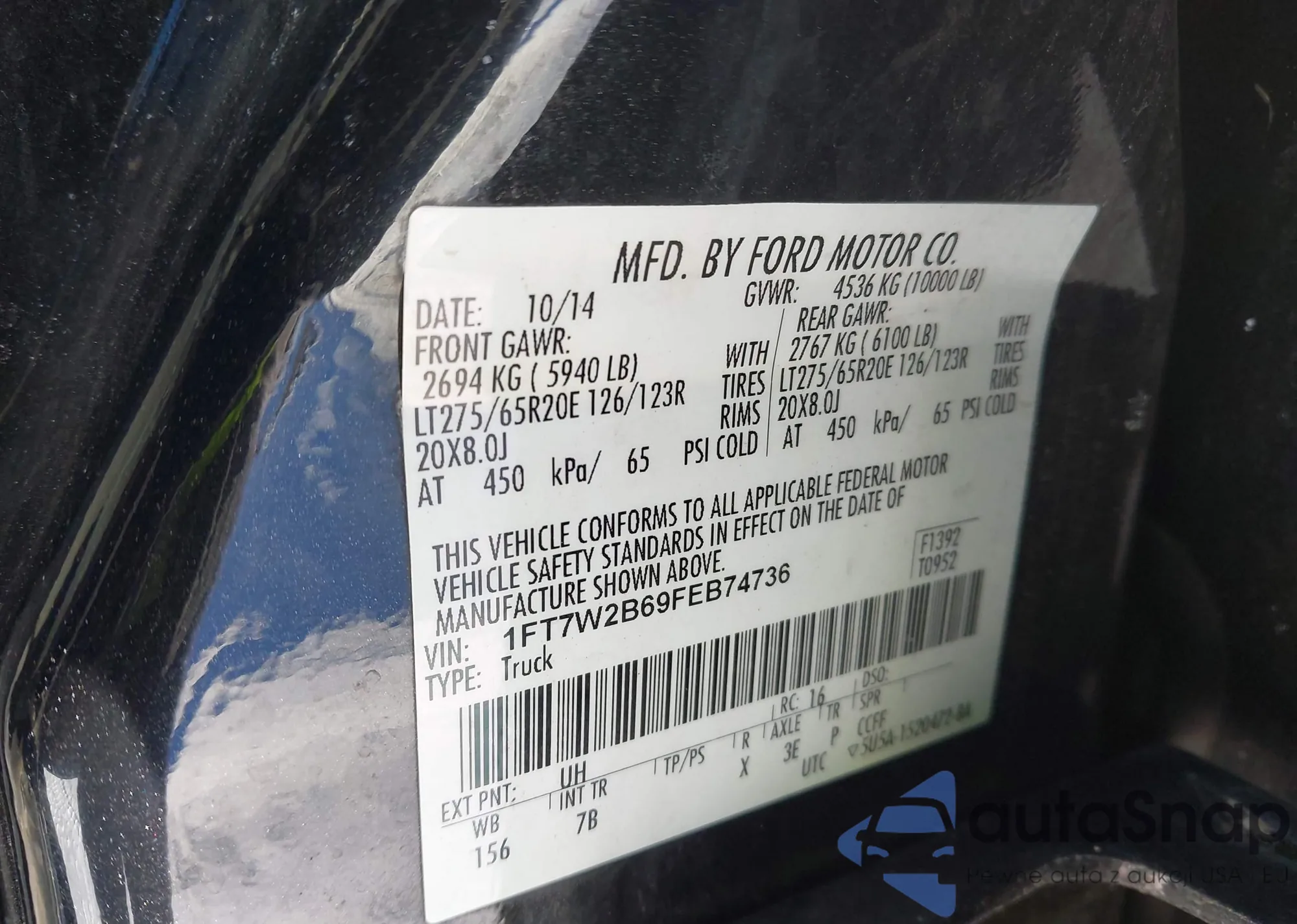The car Ford F250 2015 (VIN 1FT7W2B69FEB74736) has not been auctioned before. The documents are clean, and the mileage matches or is below the market average. Sold by an insurance company – we recommend purchase. Delivery to the port will take approx. 6–8 weeks.