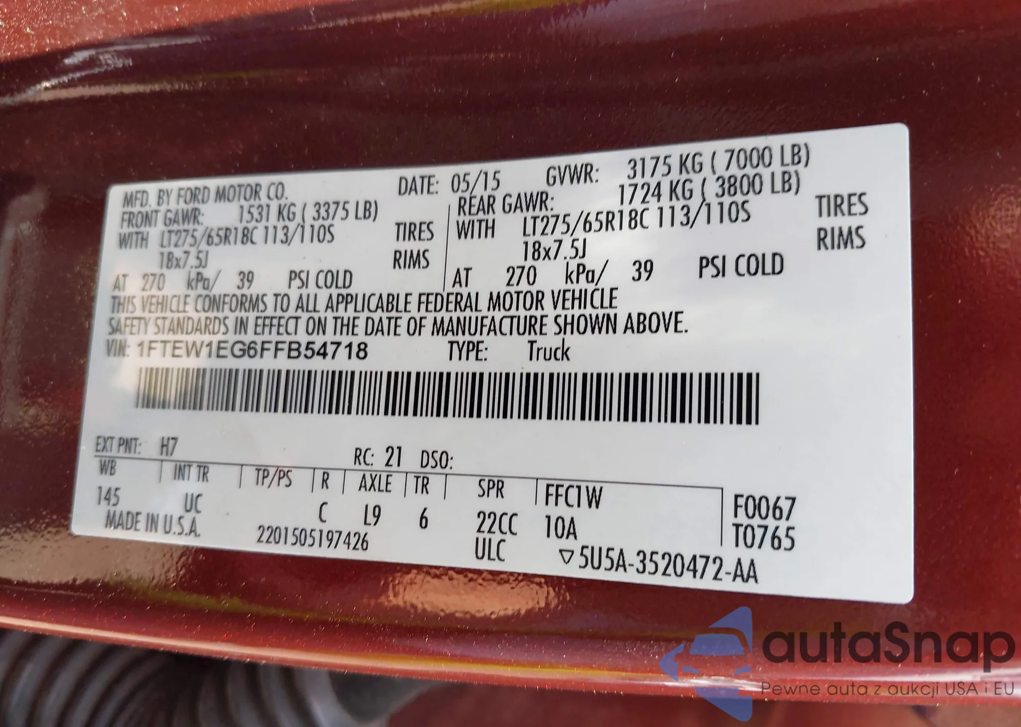VIN: 1FTEW1EG6FFB54718