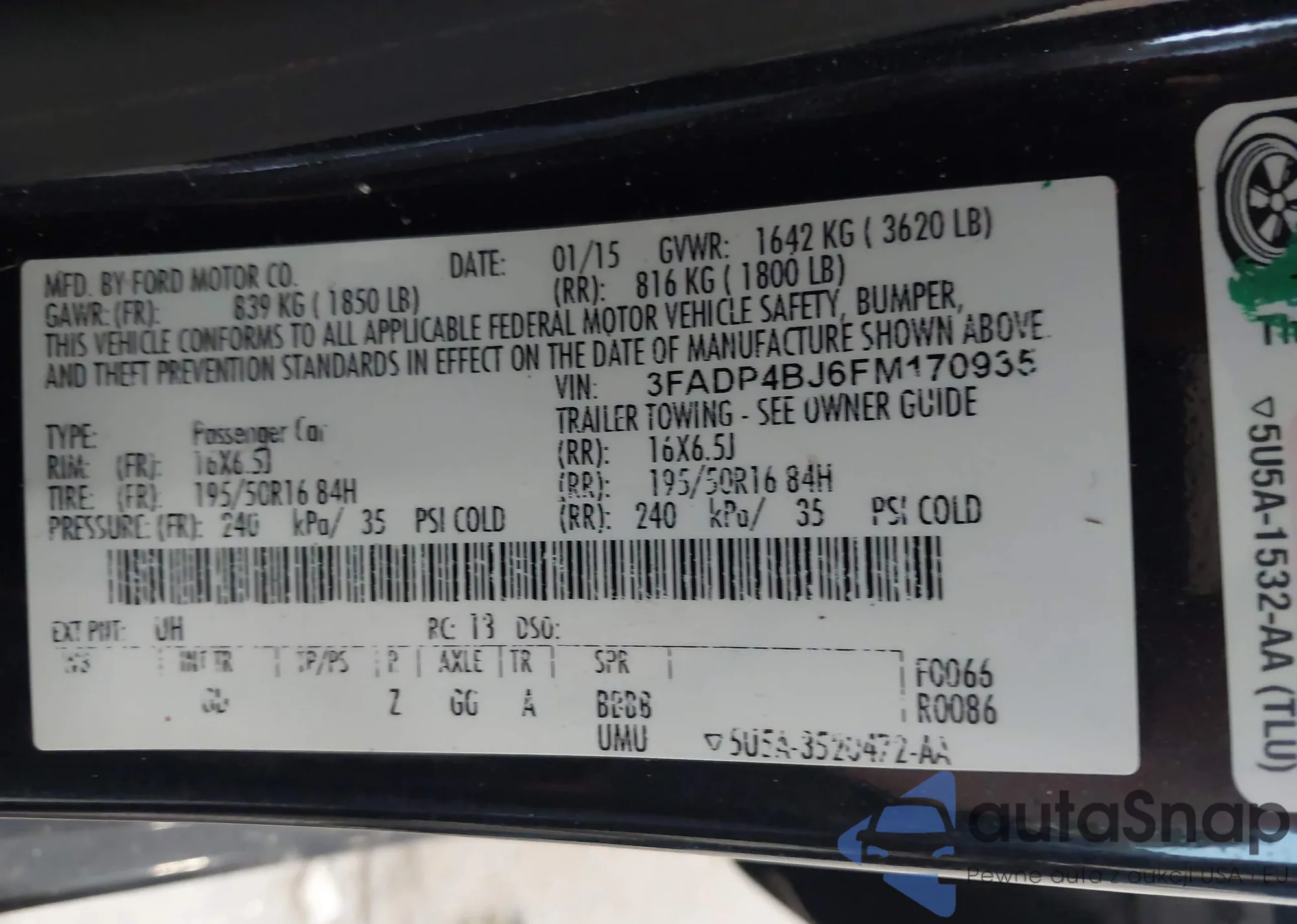 VIN: 3FADP4BJ6FM170935