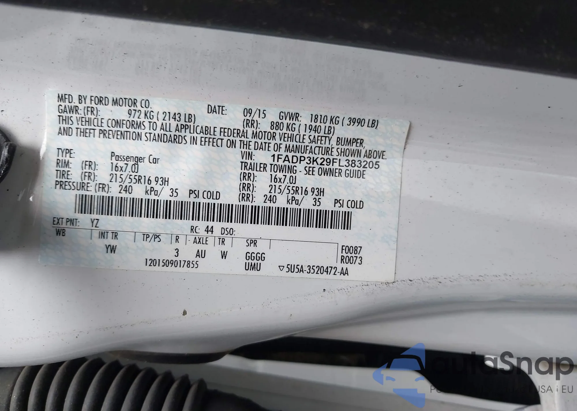 VIN: 1FADP3K29FL383205