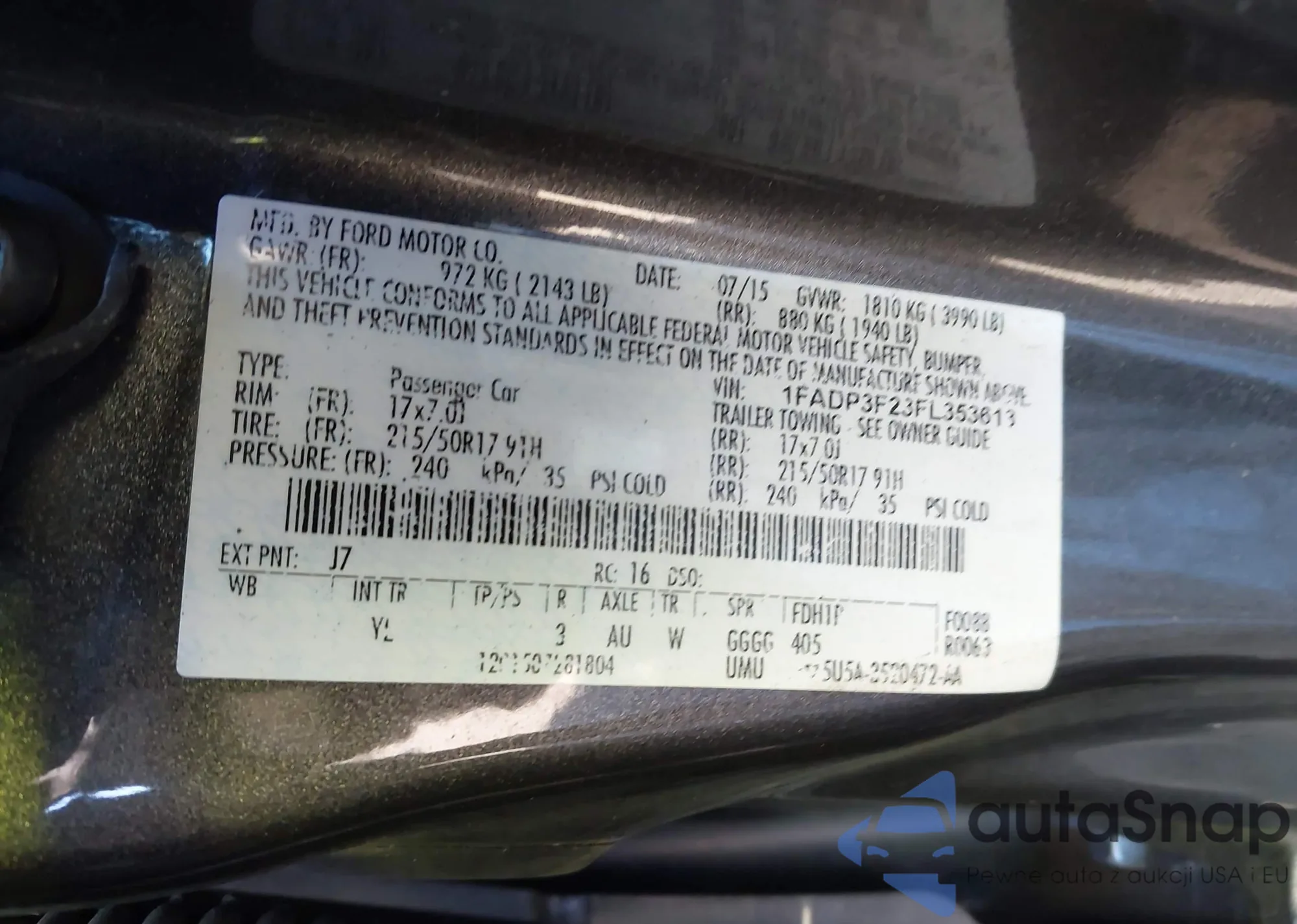 VIN: 1FADP3F23FL353613