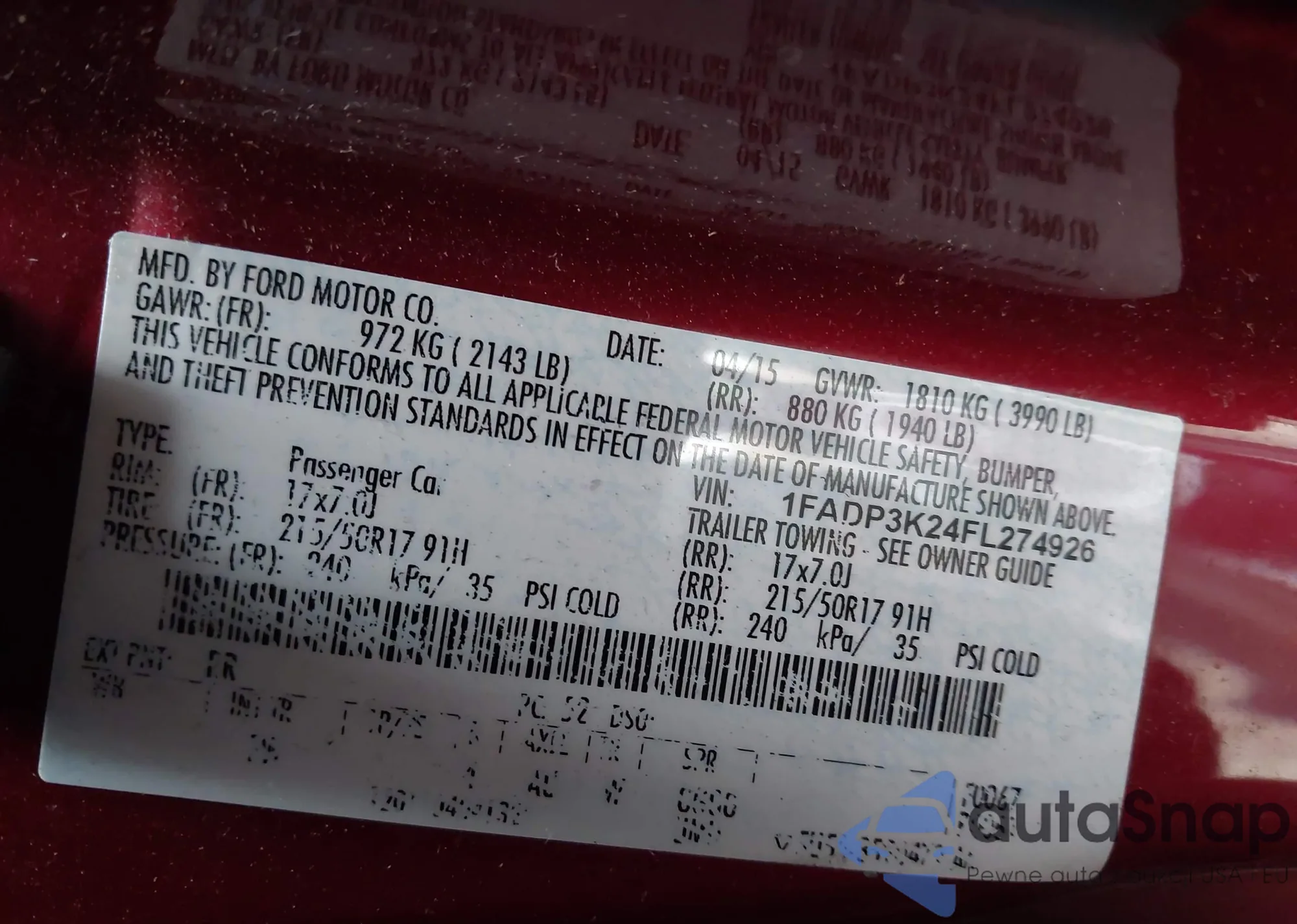 VIN: 1FADP3K24FL274926