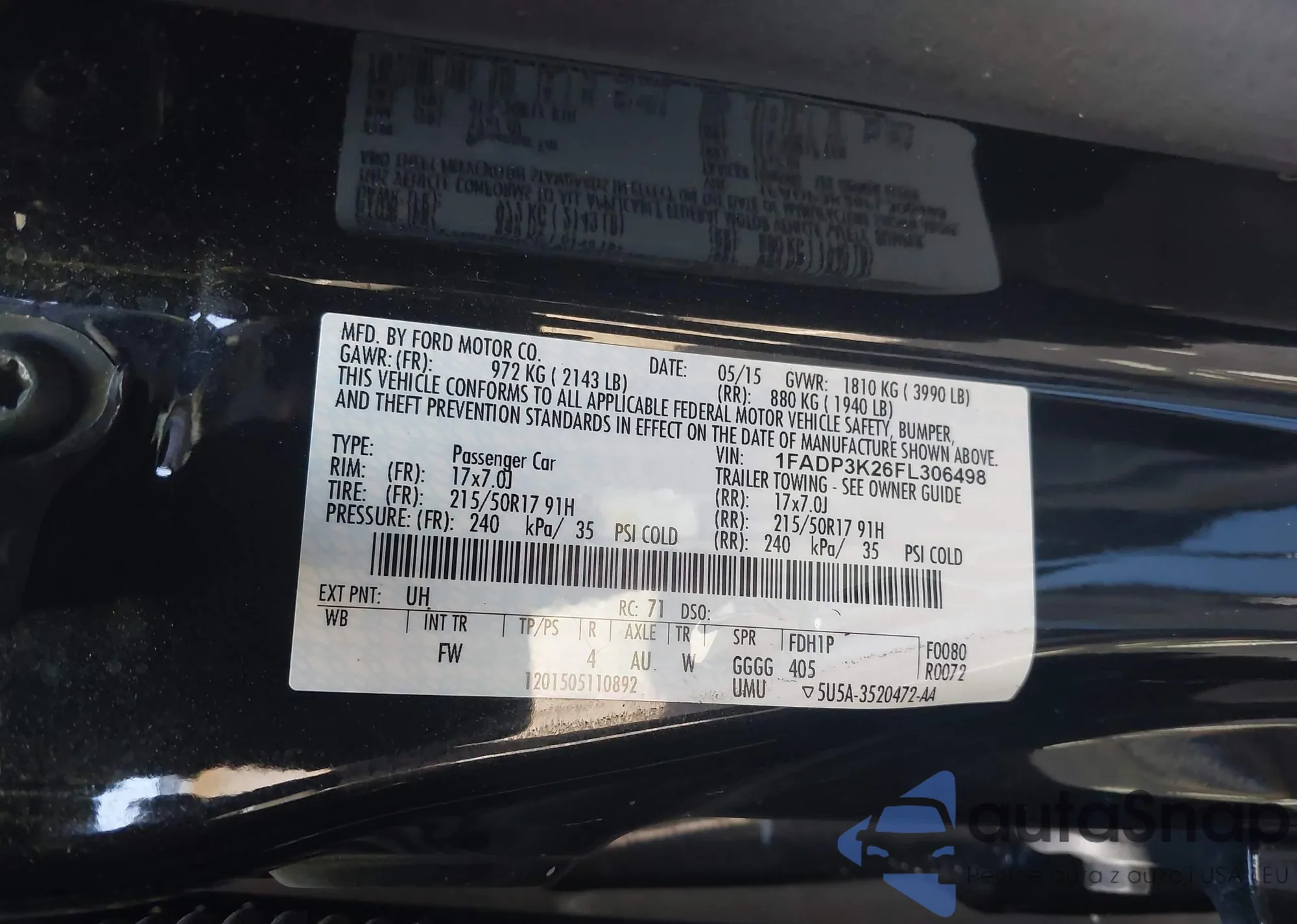 • VIN: 1FADP3K26FL306498