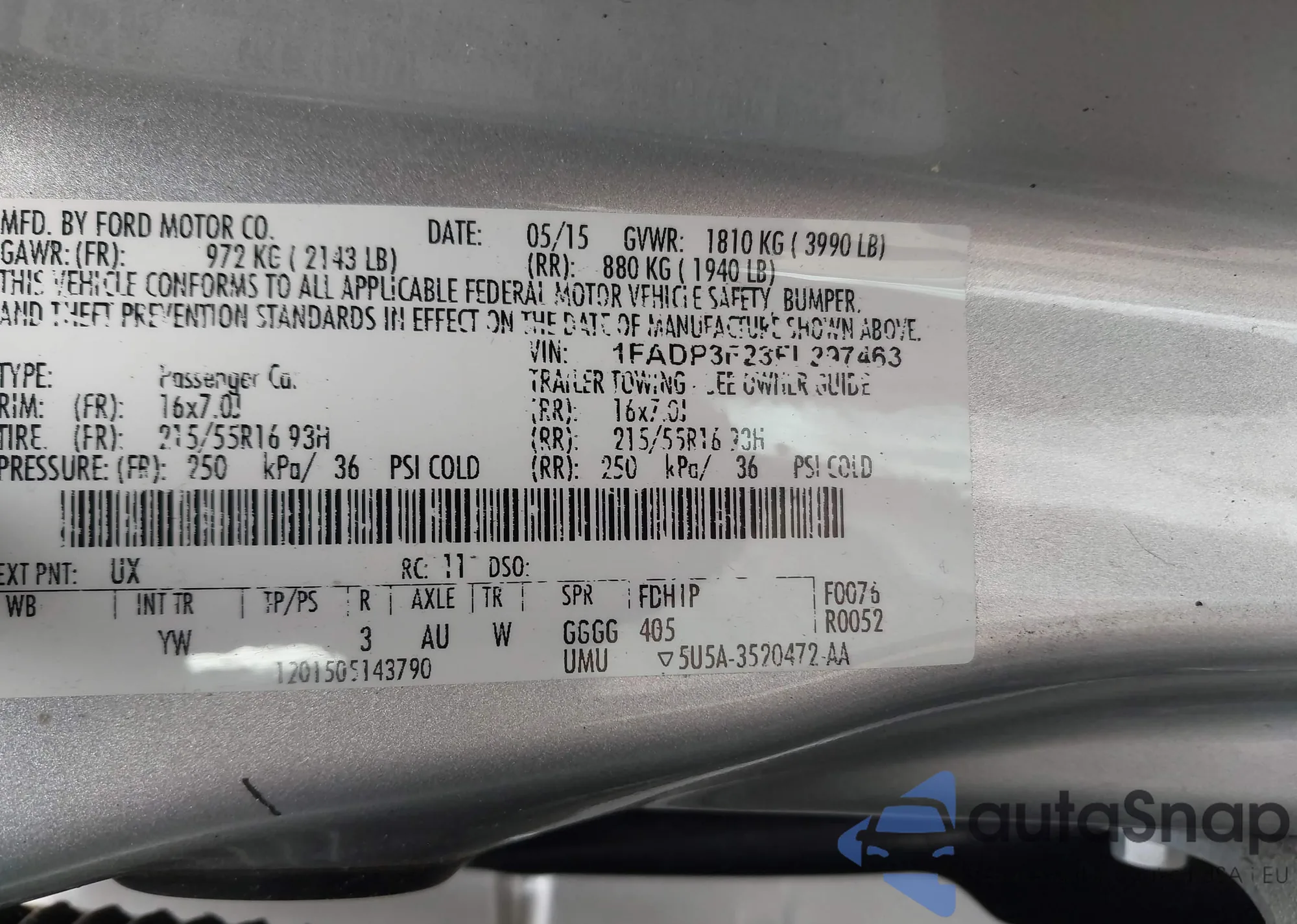 VIN: 1FADP3F23FL297463