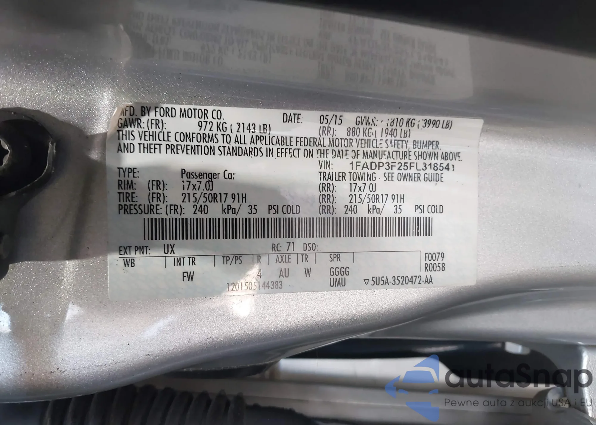 VIN: 1FADP3F25FL318541