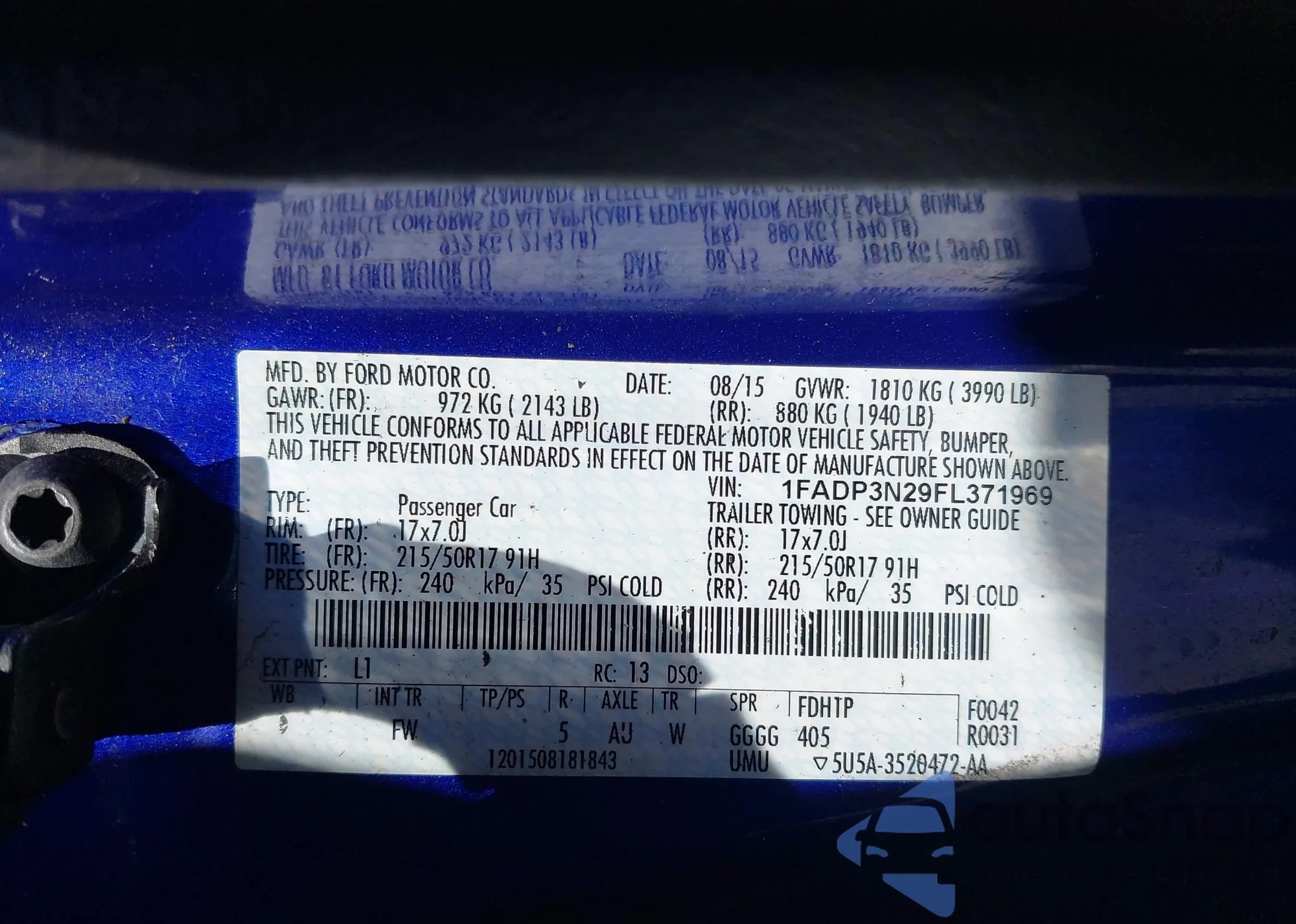 VIN: 1FADP3N29FL371969
