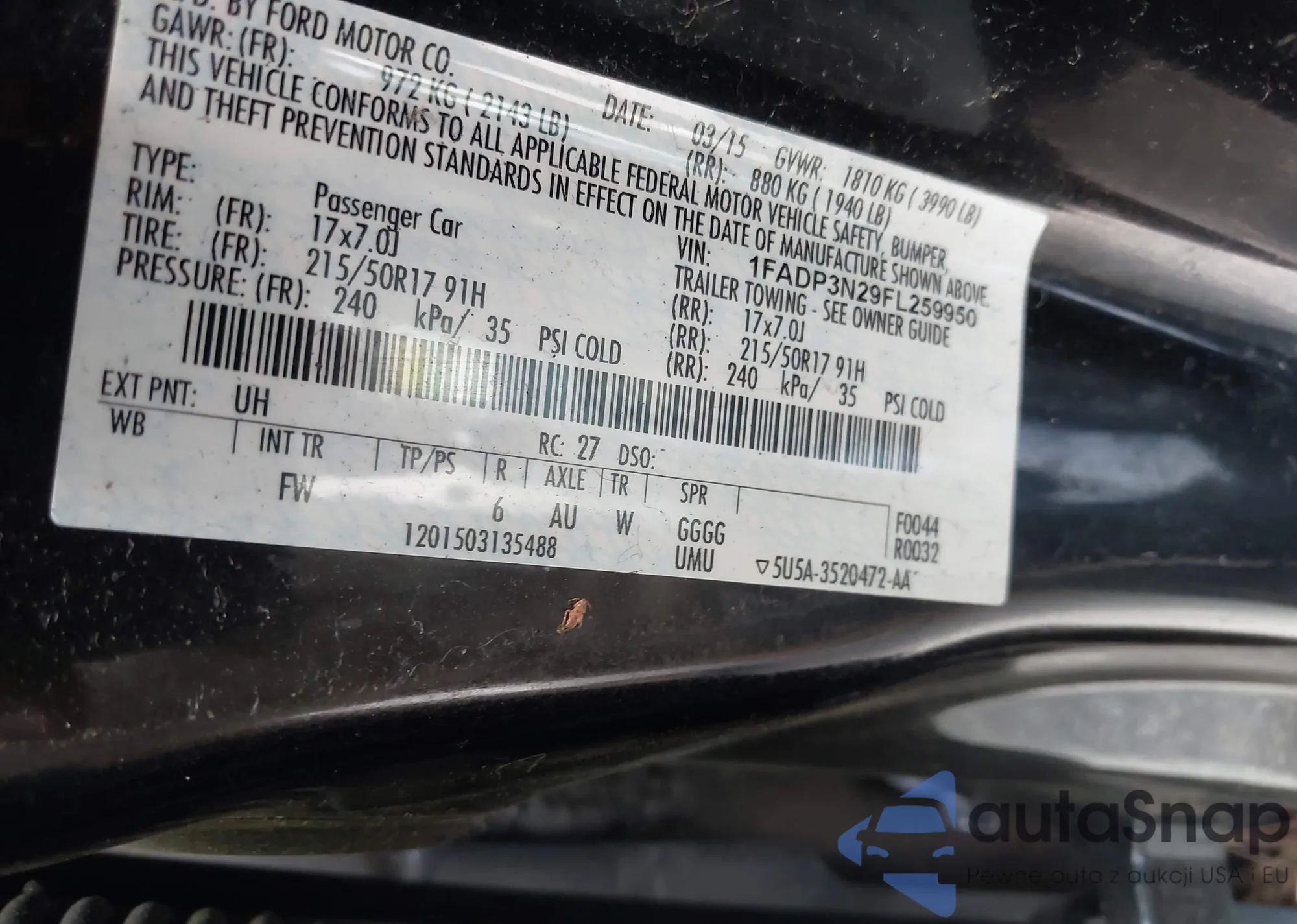 VIN: 1FADP3N29FL259950