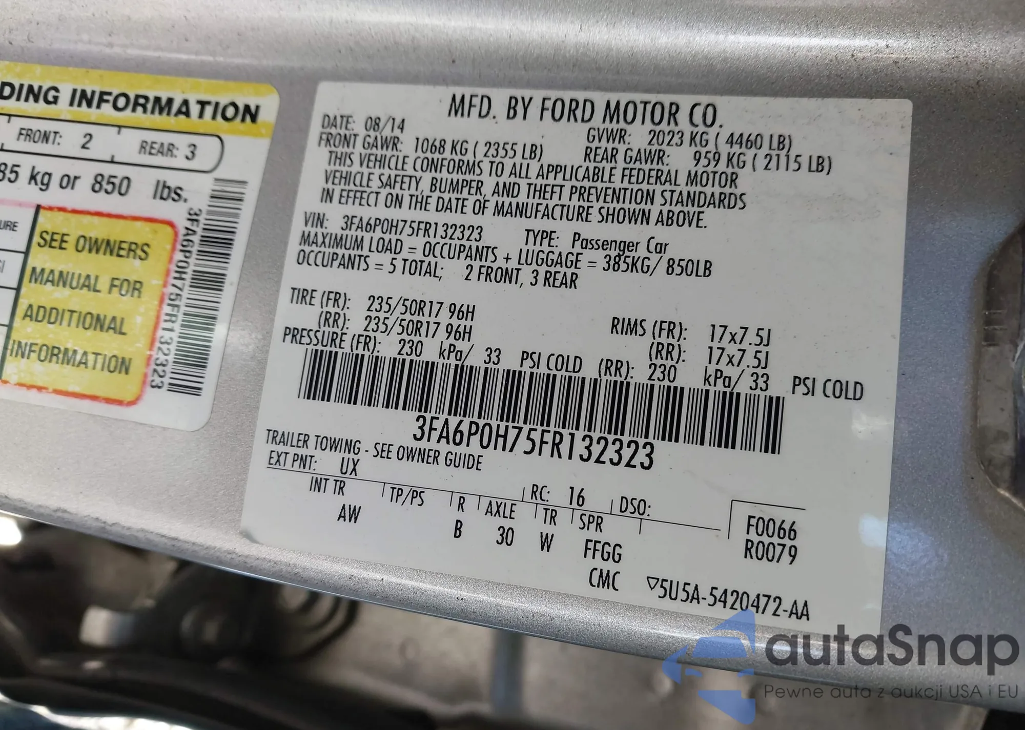 VIN: 3FA6P0H75FR132323
