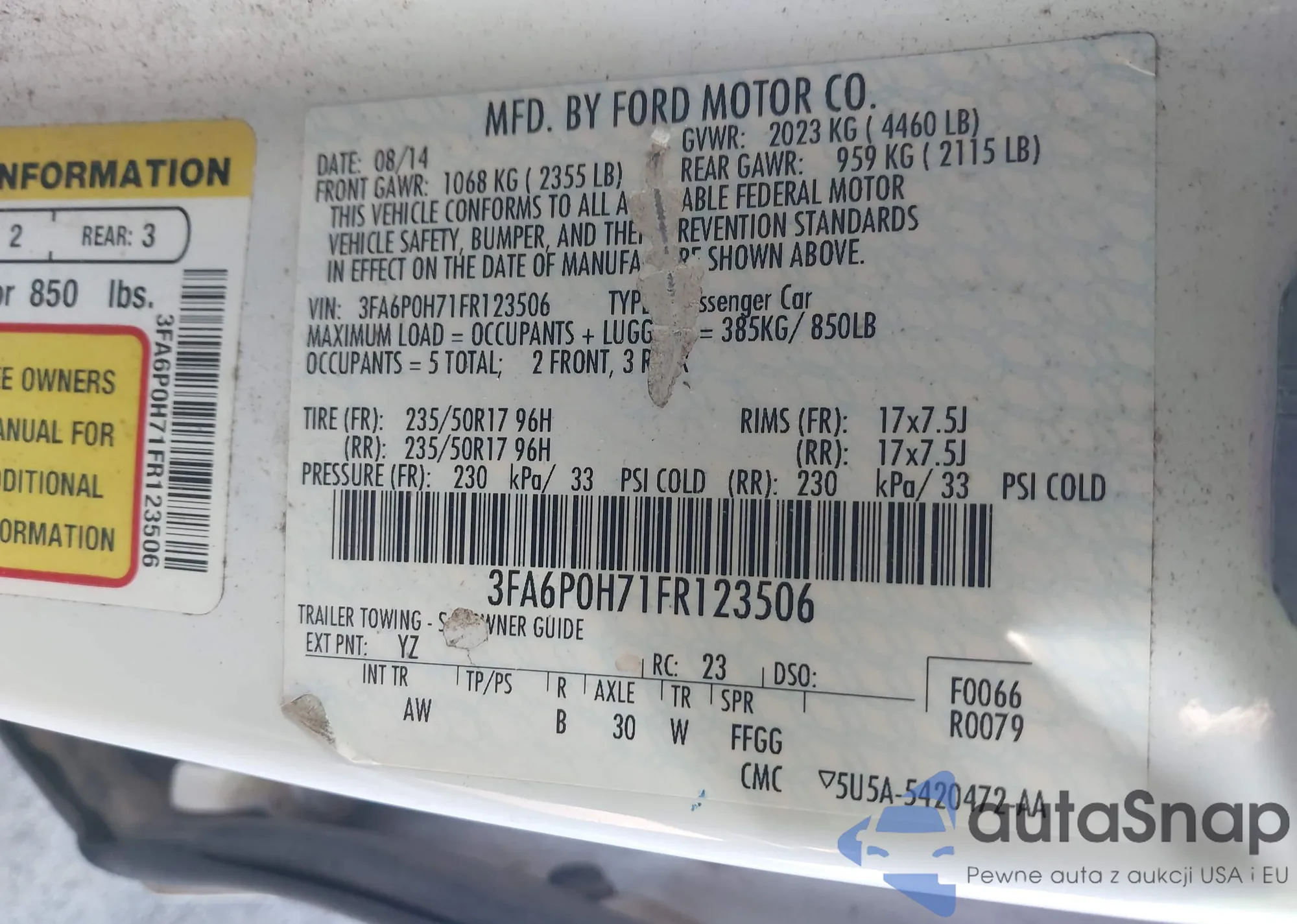 VIN: 3FA6P0H71FR123506