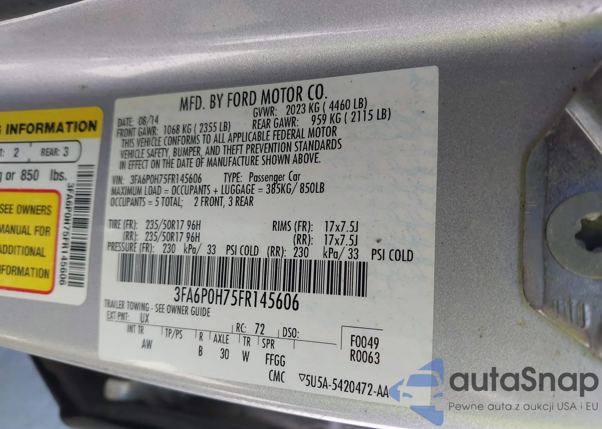 • VIN: 3FA6P0H75FR145606