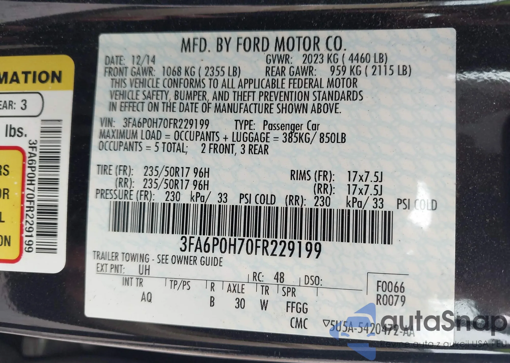 VIN: 3FA6P0H70FR229199