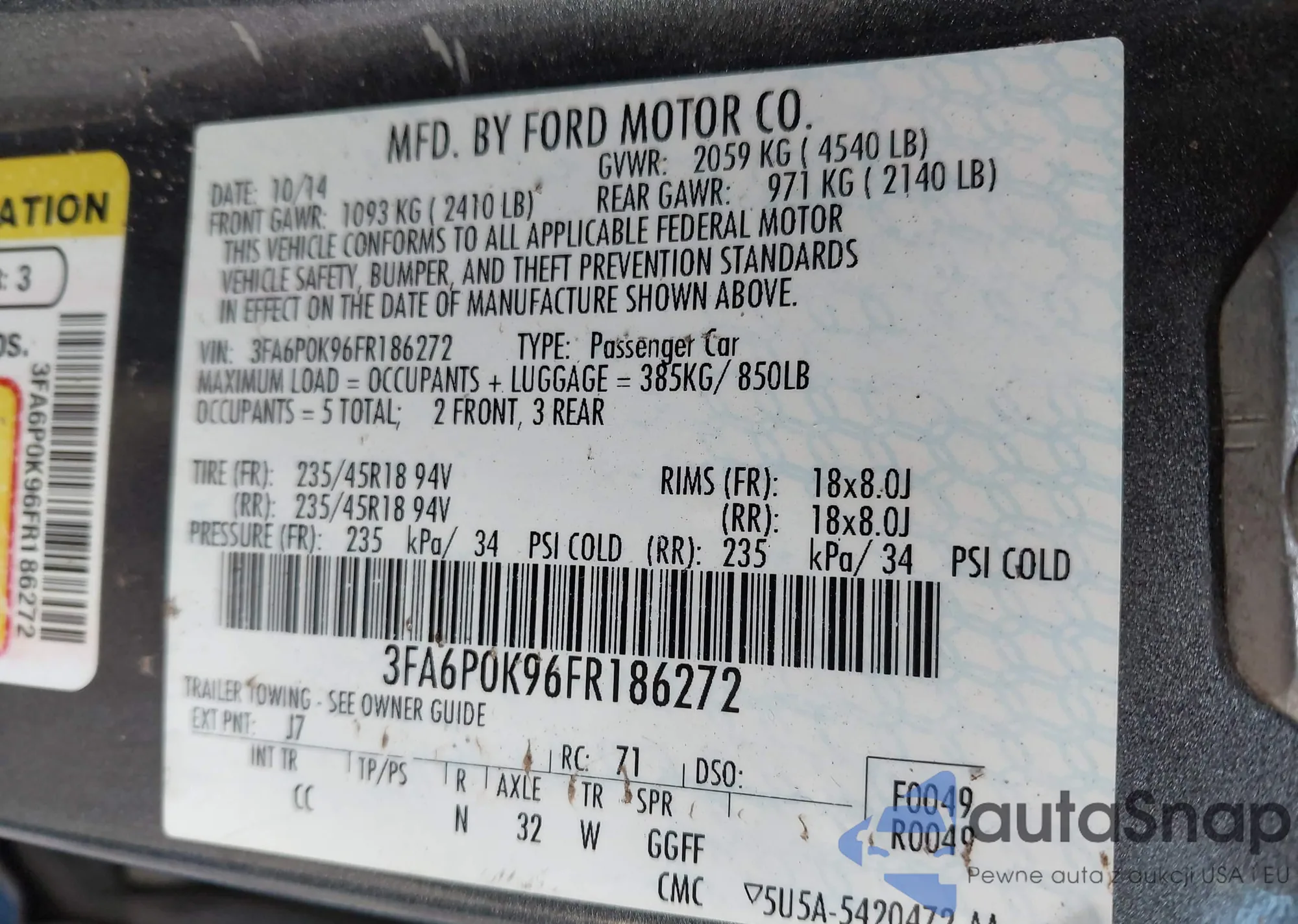 VIN: 3FA6P0K96FR186272