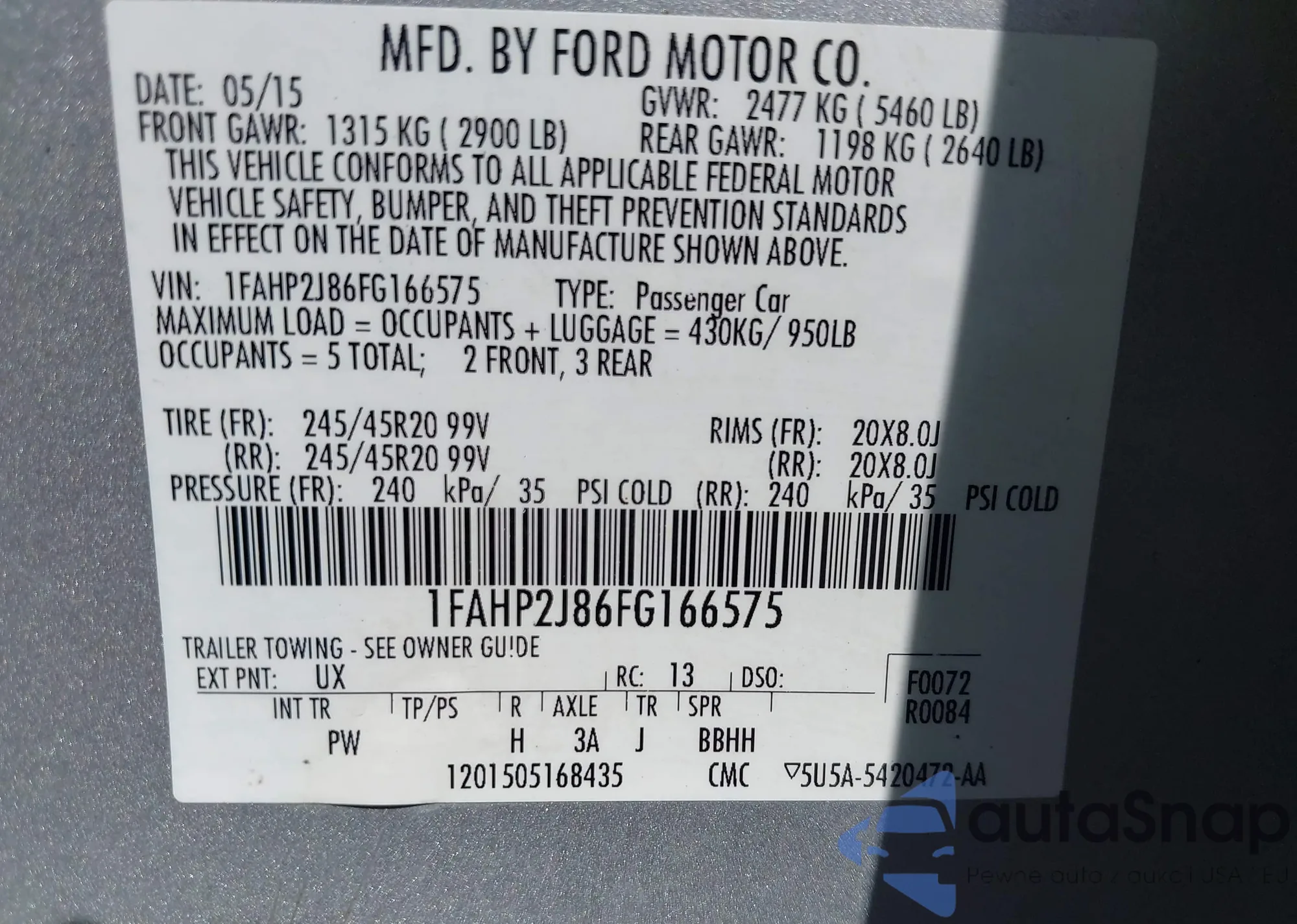 • VIN: 1FAHP2J86FG166575