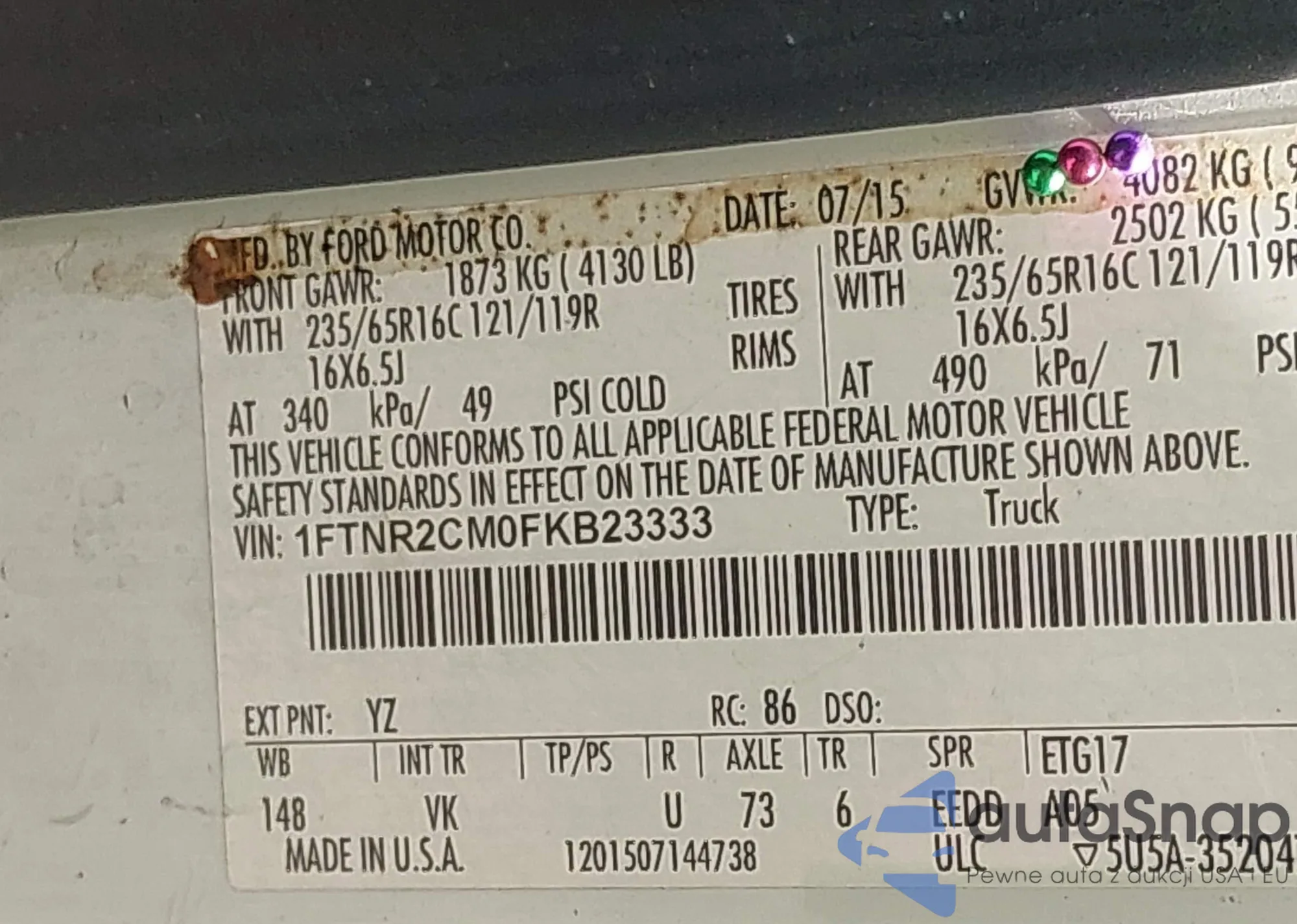 VIN: 1FTNR2CM0FKB23333
