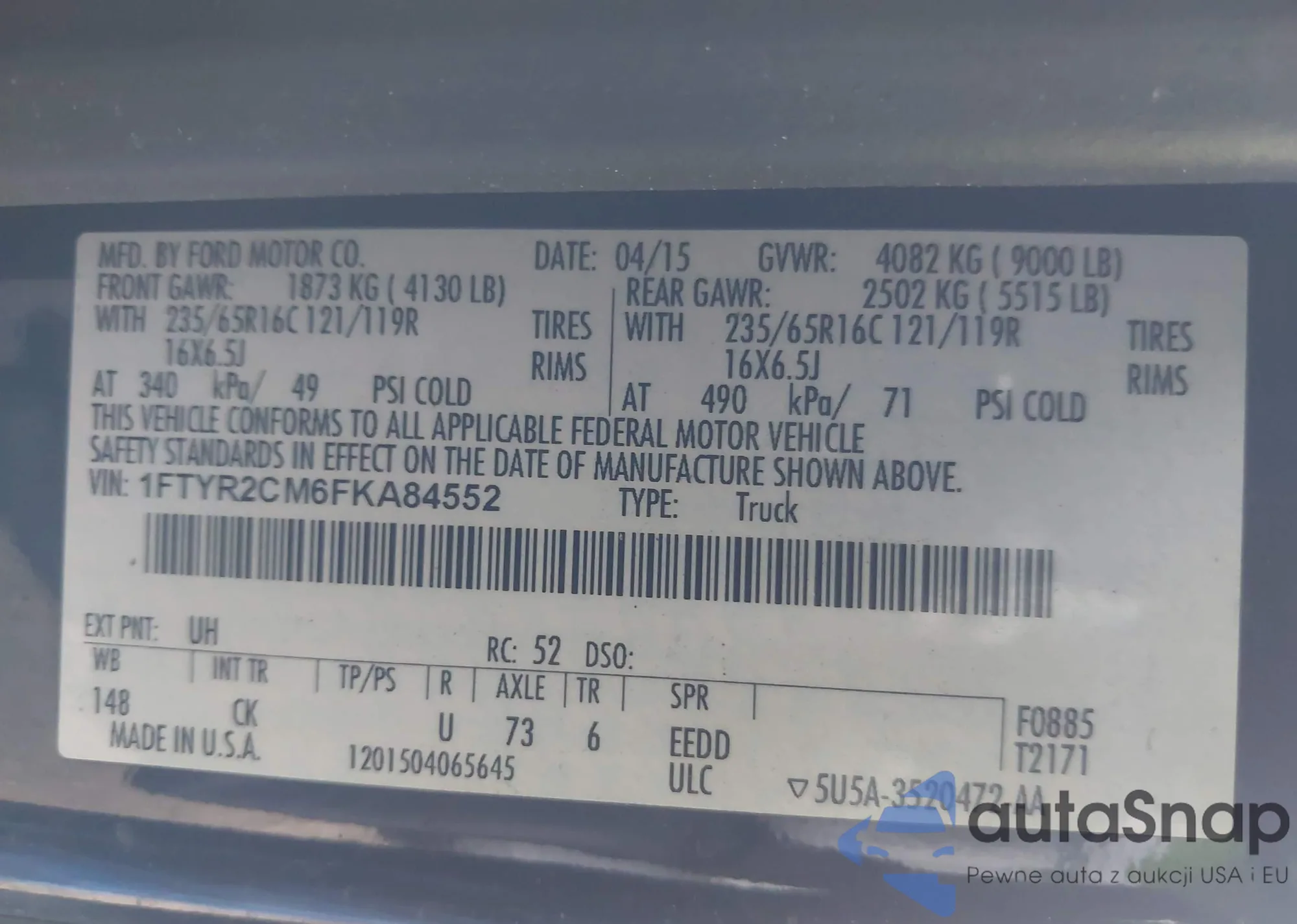 VIN: 1FTYR2CM6FKA84552