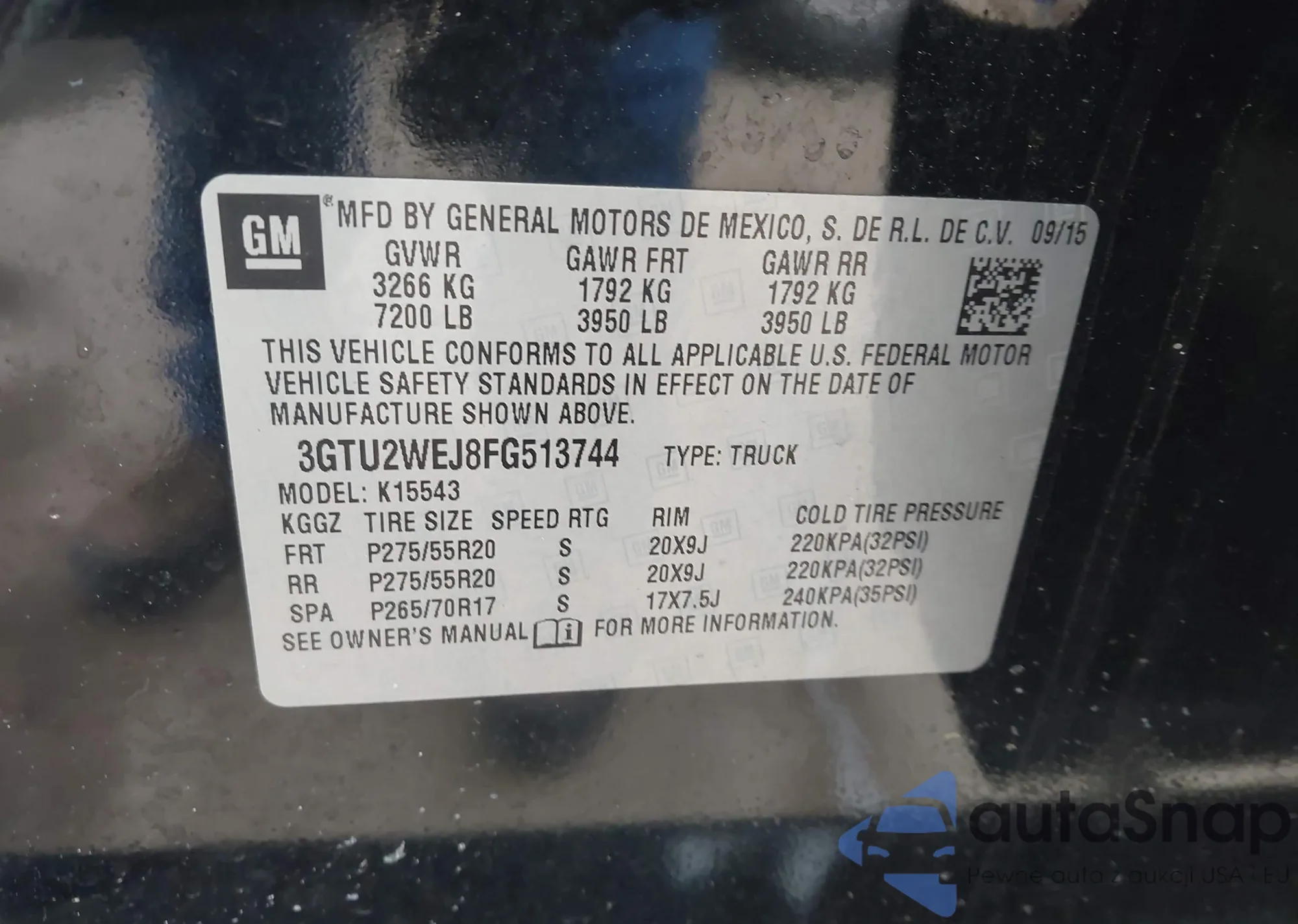 The car GMC Sierra 2015 (VIN 3GTU2WEJ8FG513744) has not been auctioned before. The documents are clean, and the mileage matches or is below the market average. Sold by an insurance company – we recommend purchase. Delivery to the port will take approx. 6–8 weeks.