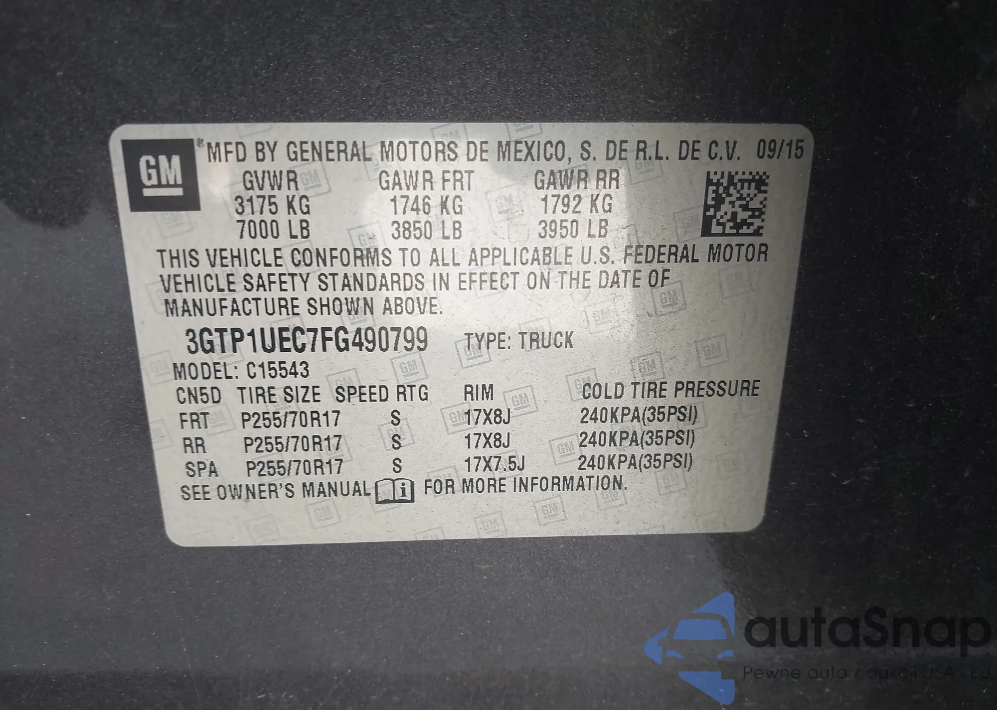 VIN: 3GTP1UEC7FG490799