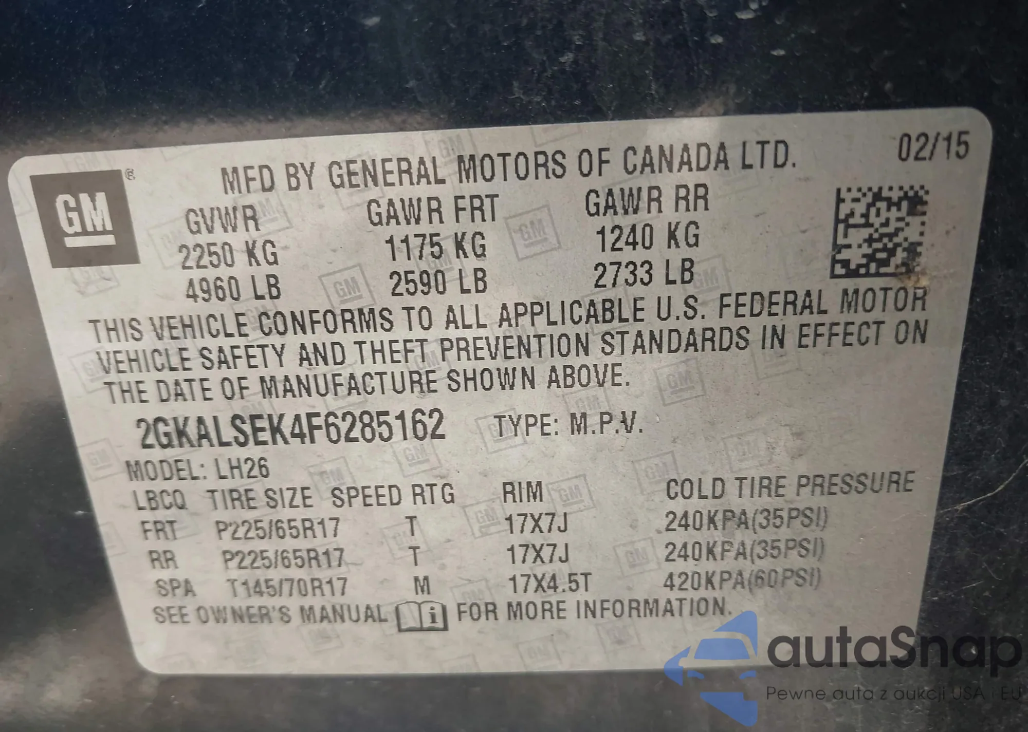 VIN: 2GKALSEK4F6285162