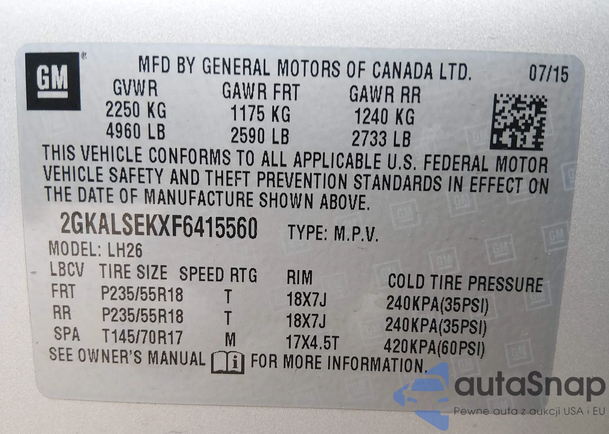 VIN: 2GKALSEKXF6415560
