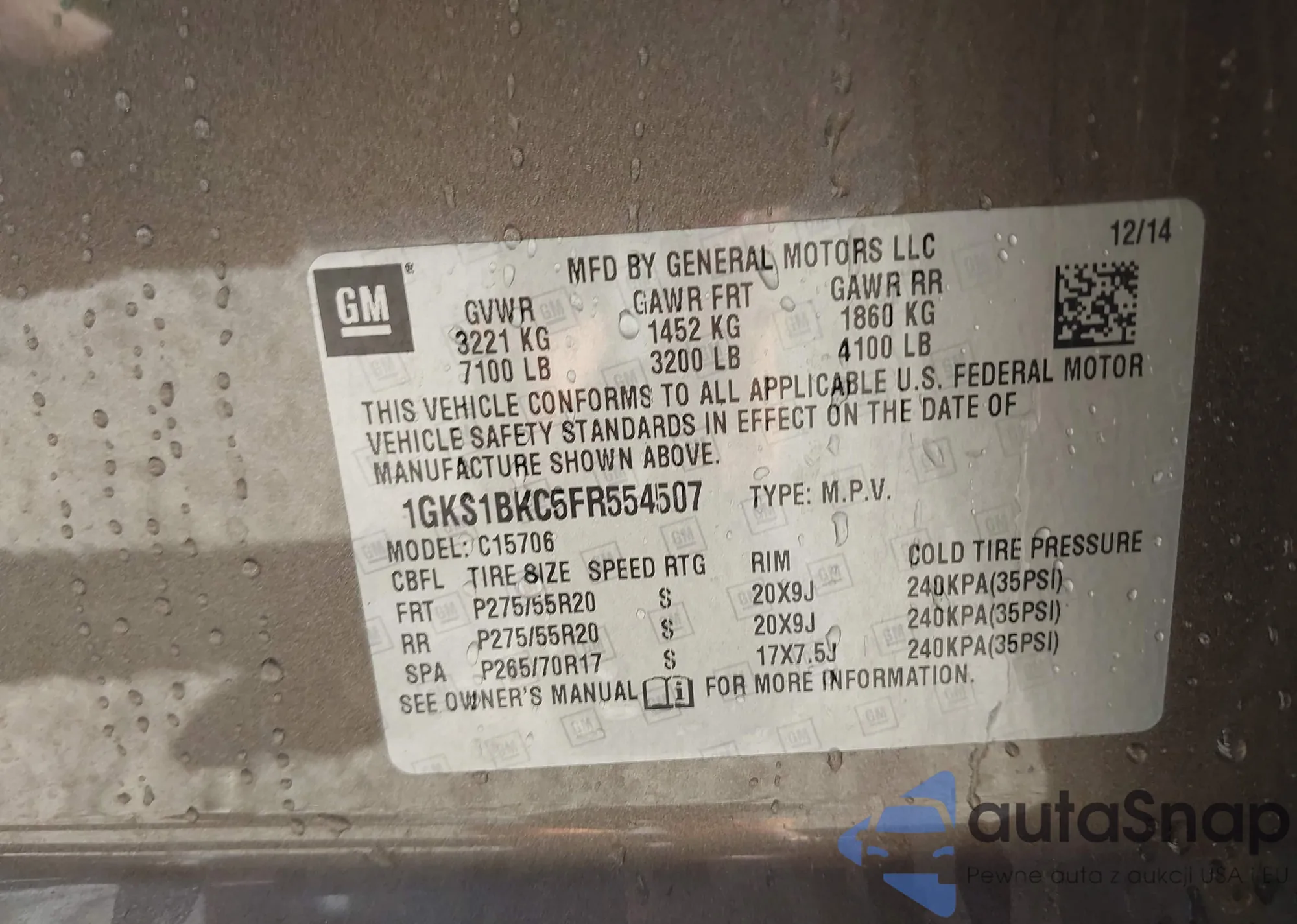 VIN: 1GKS1BKC5FR554507