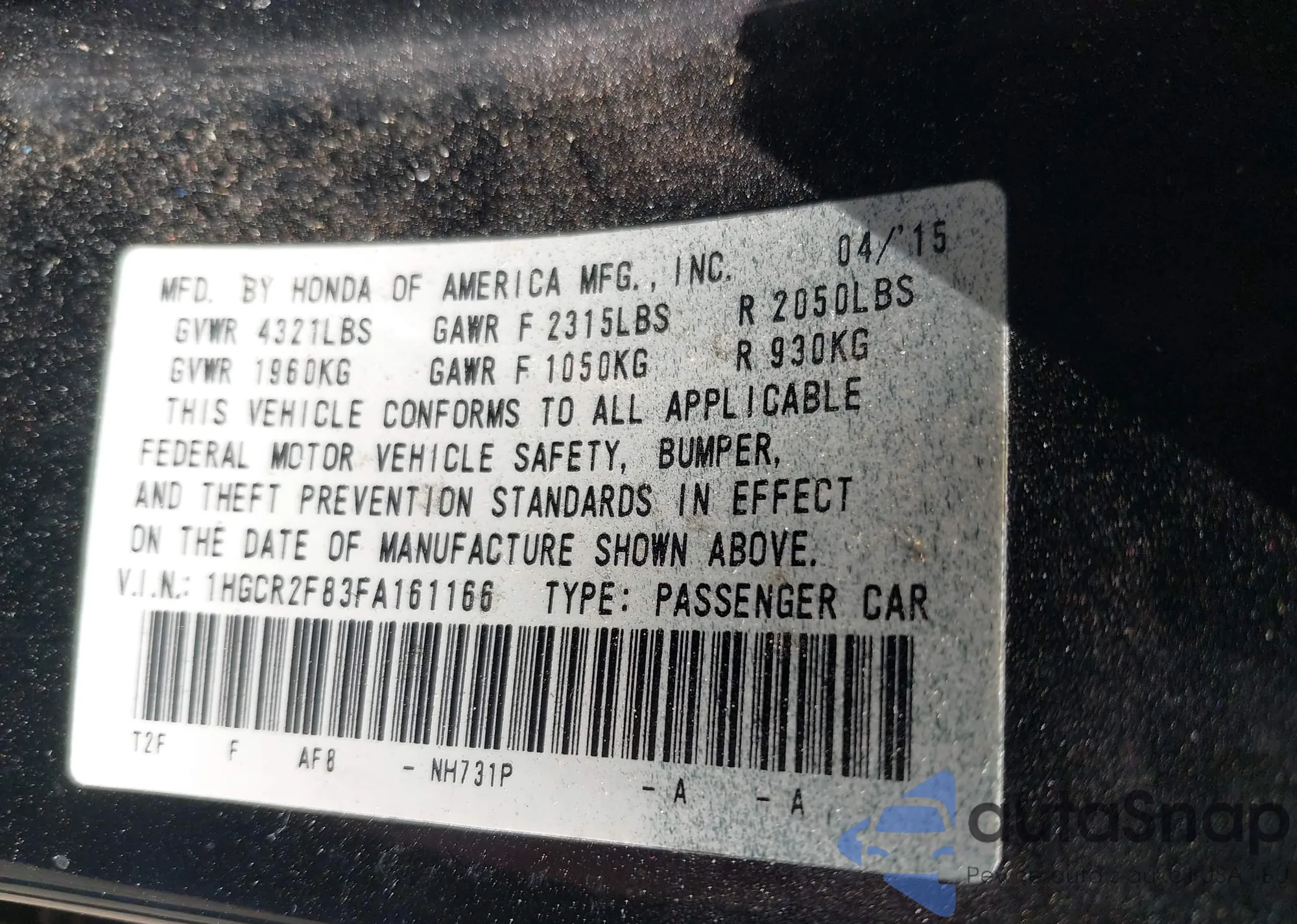 VIN: 1HGCR2F83FA161166