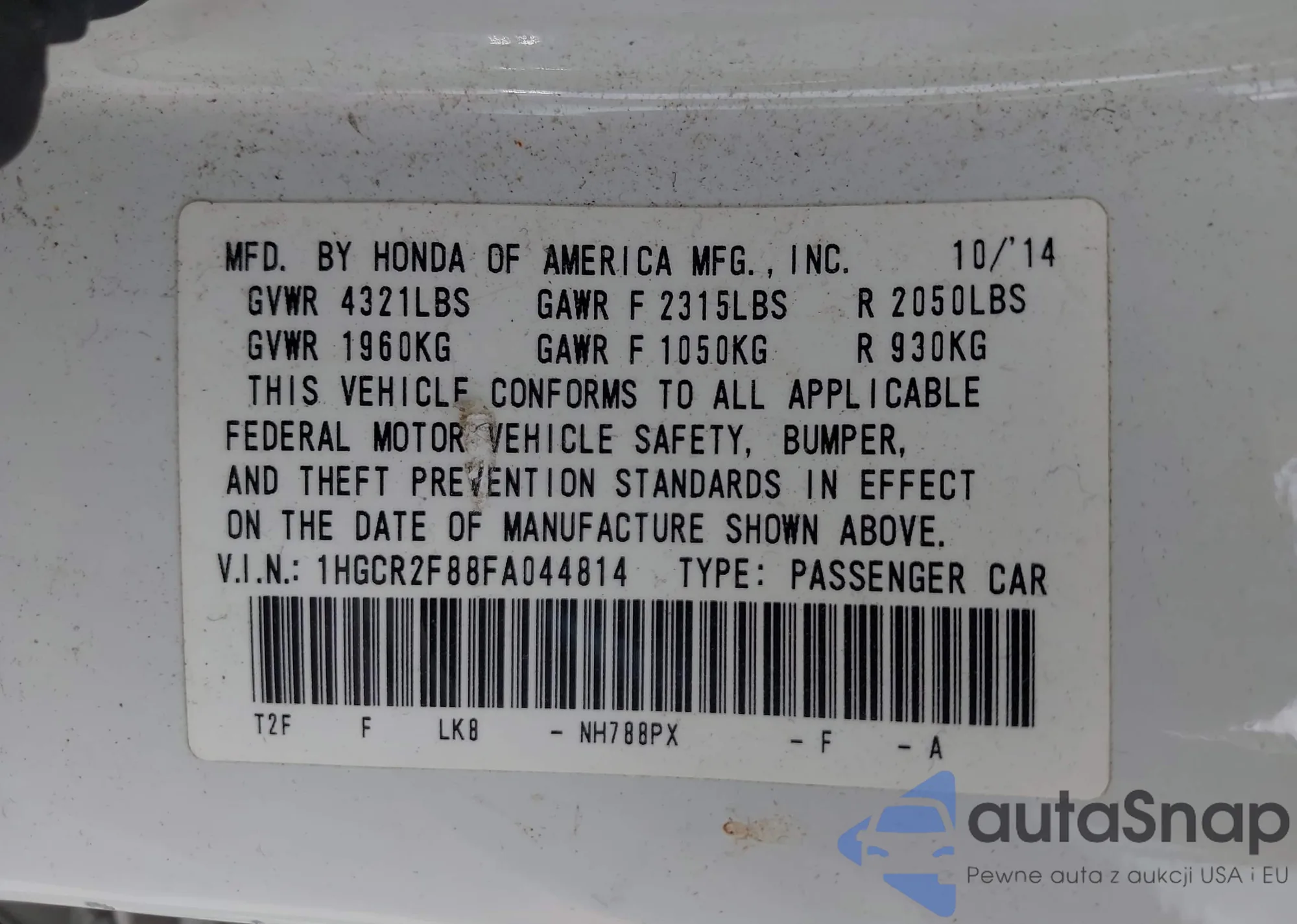 VIN: 1HGCR2F88FA044814