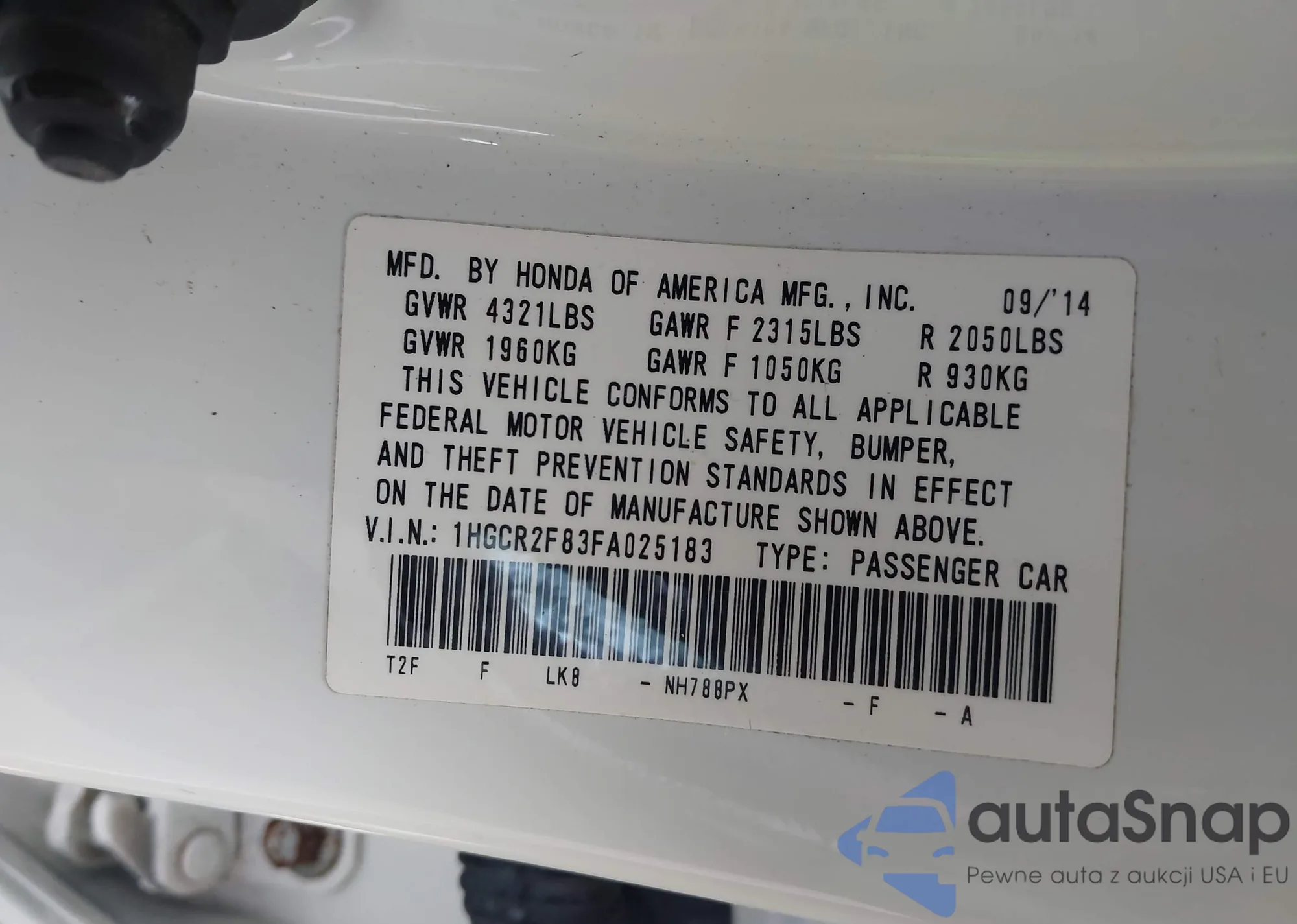 VIN: 1HGCR2F83FA025183
