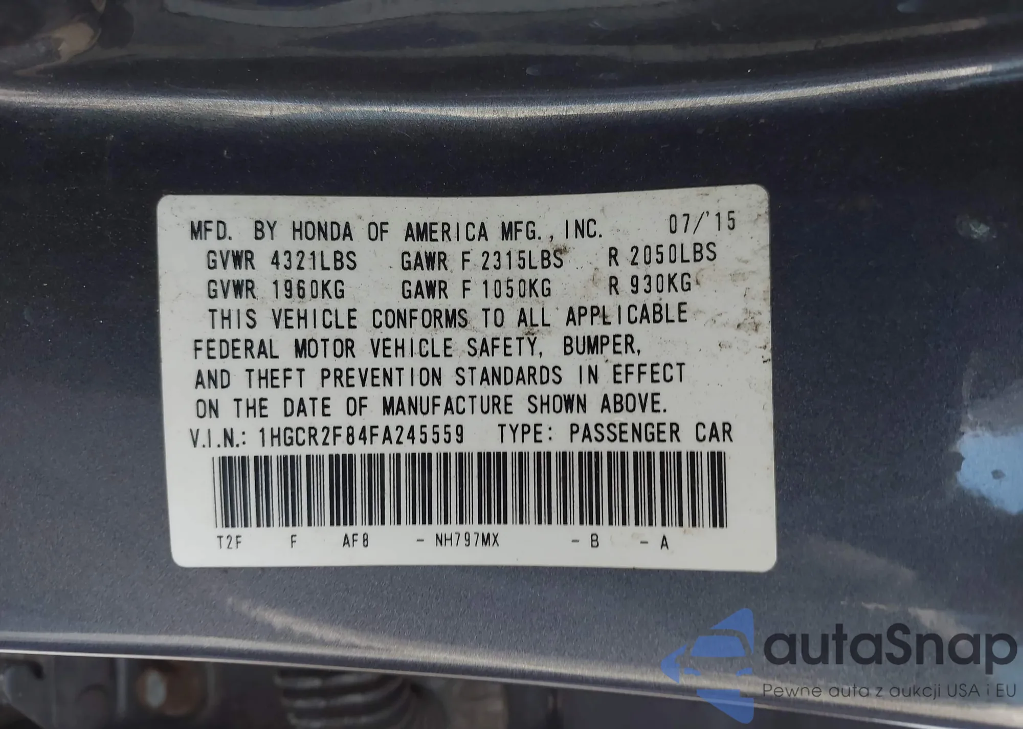 VIN: 1HGCR2F84FA245559