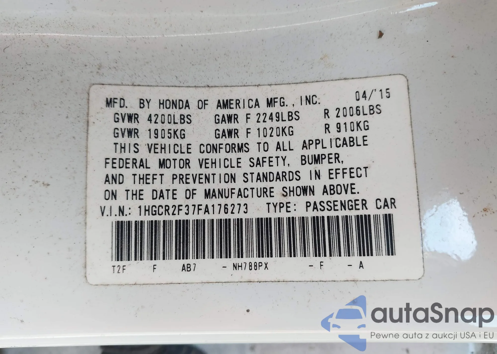 VIN: 1HGCR2F37FA176273