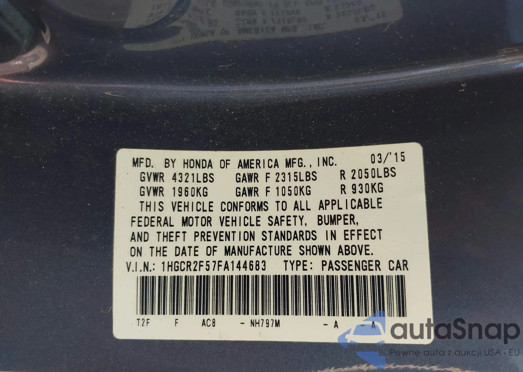 VIN: 1HGCR2F57FA144683