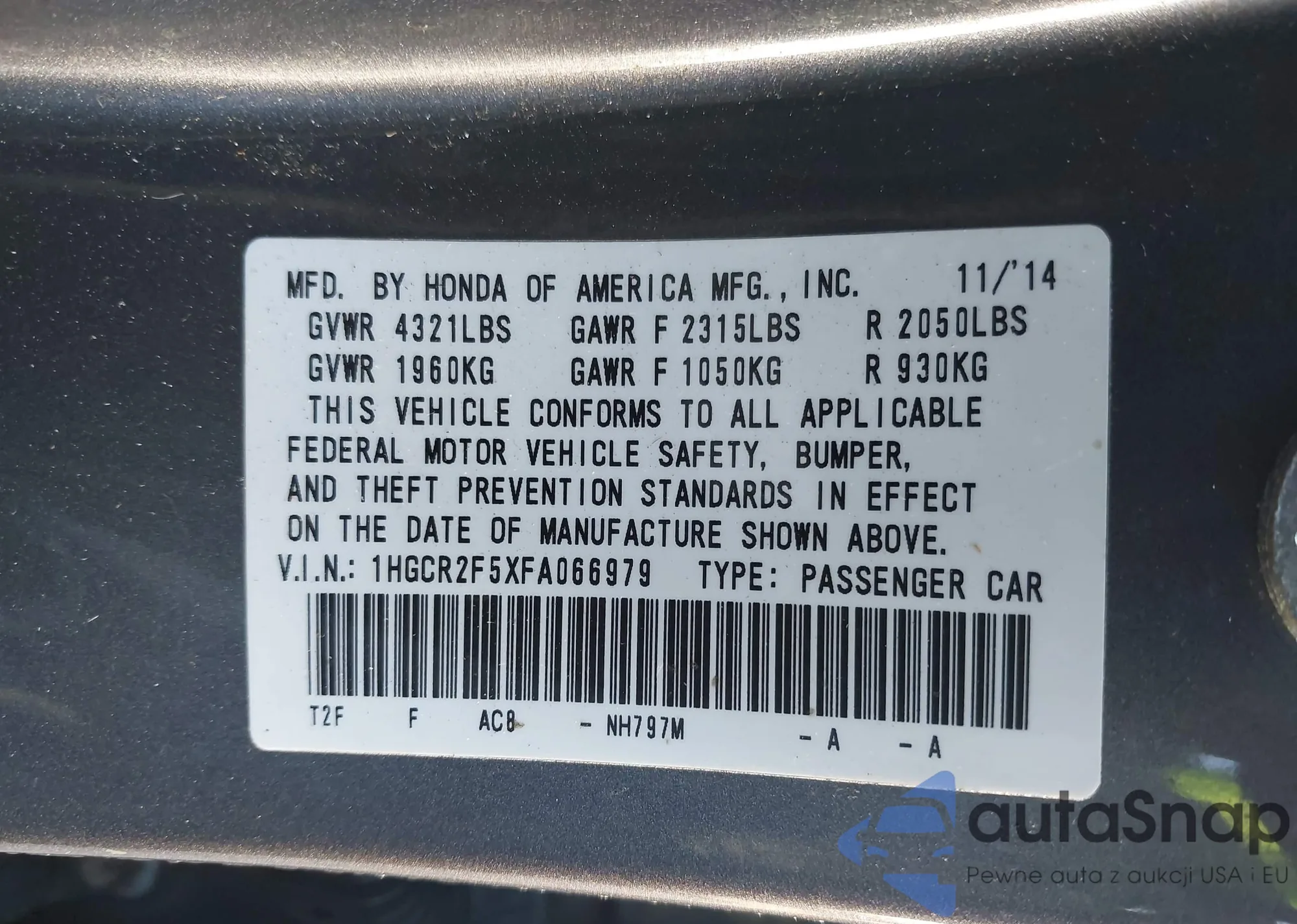 VIN: 1HGCR2F5XFA066979