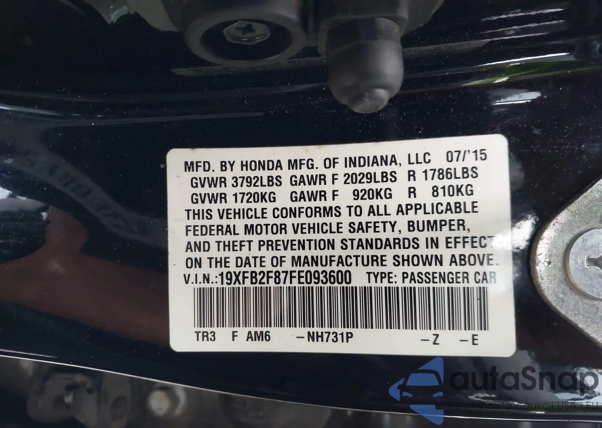 VIN: 19XFB2F87FE093600