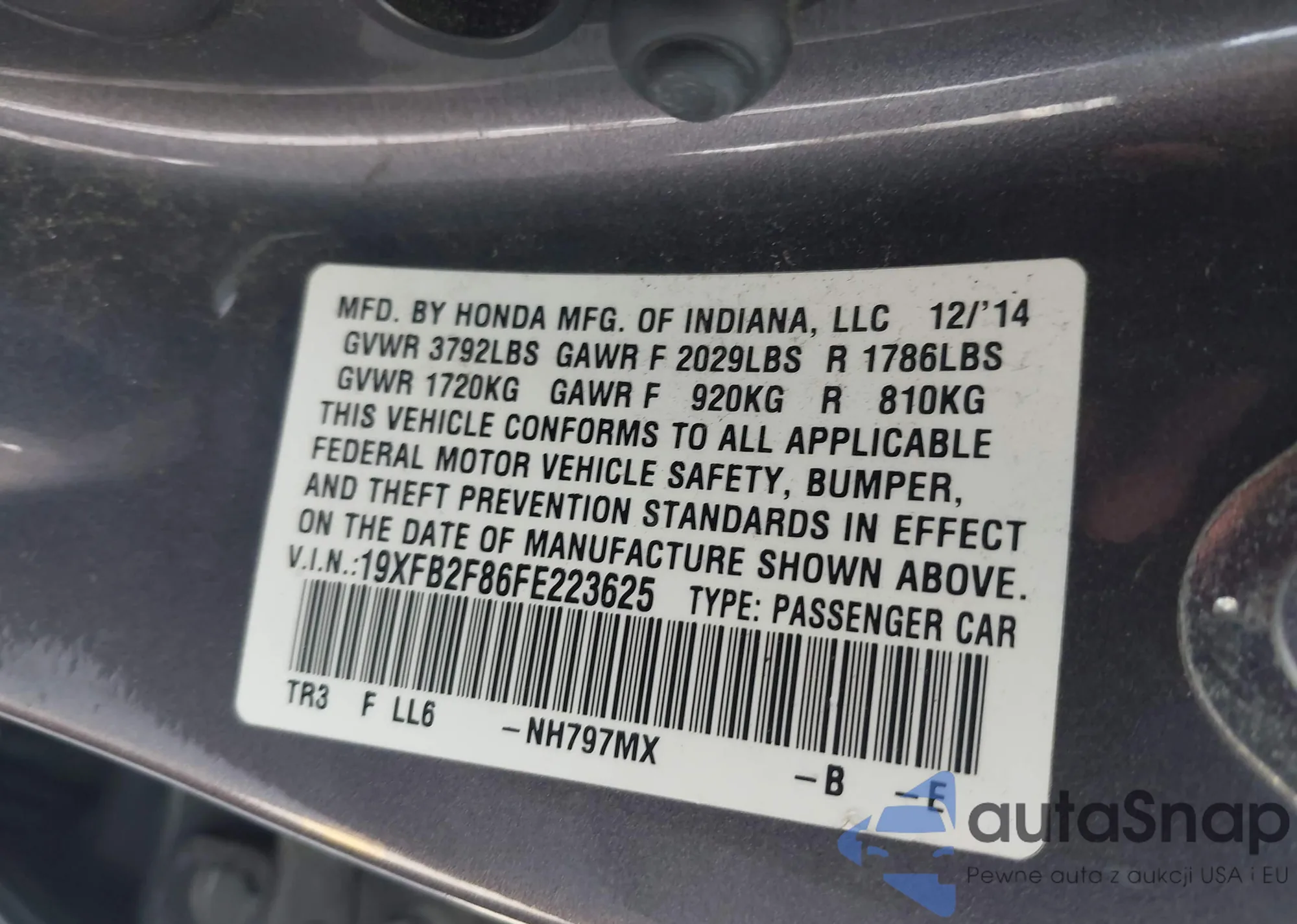 VIN: 19XFB2F86FE223625