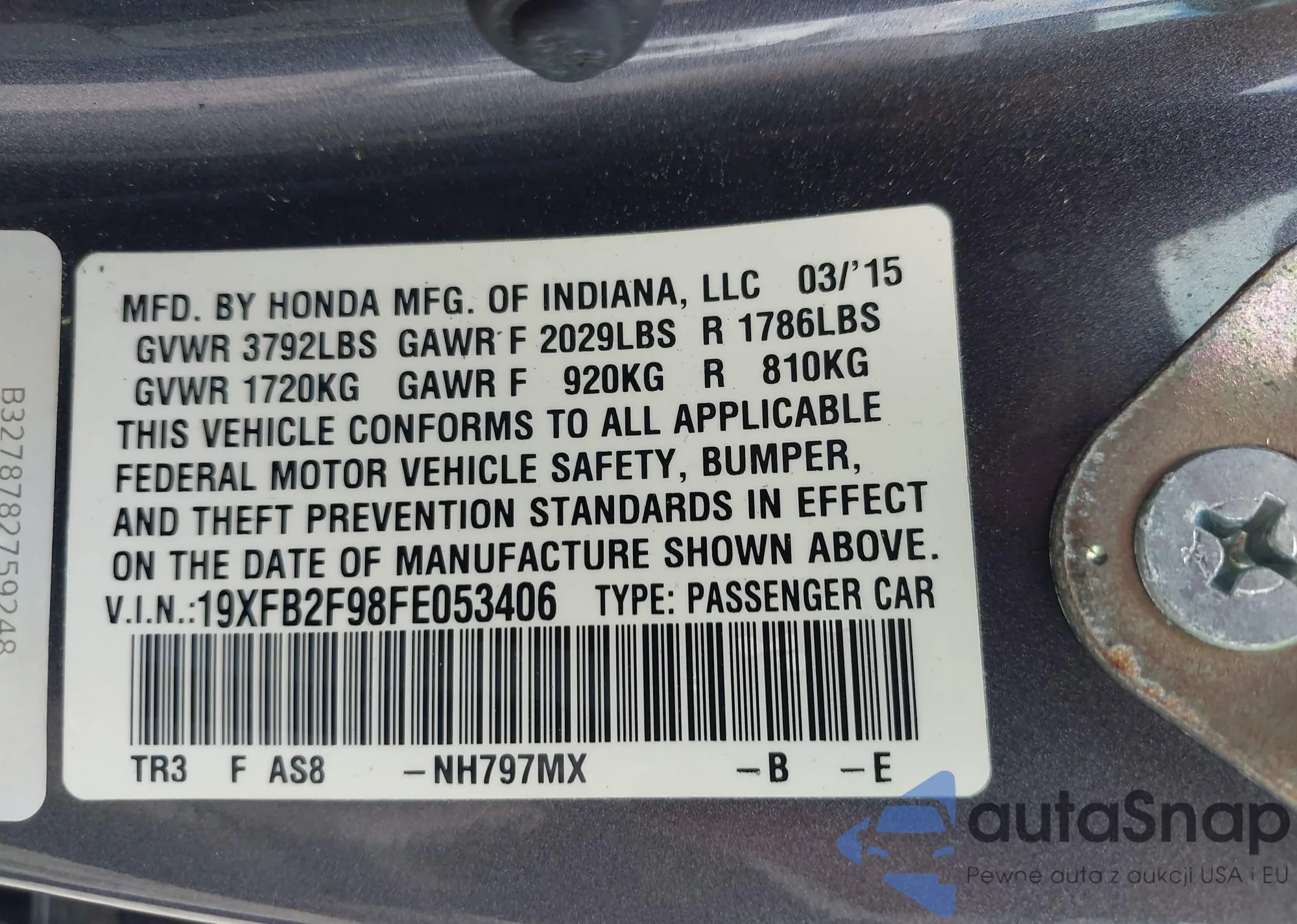 VIN: 19XFB2F98FE053406