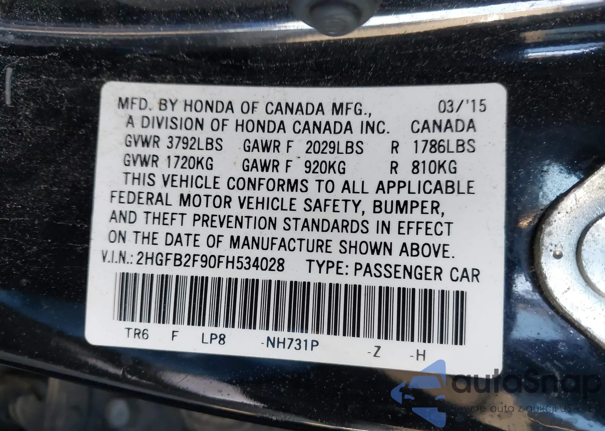 • VIN: 2HGFB2F90FH534028