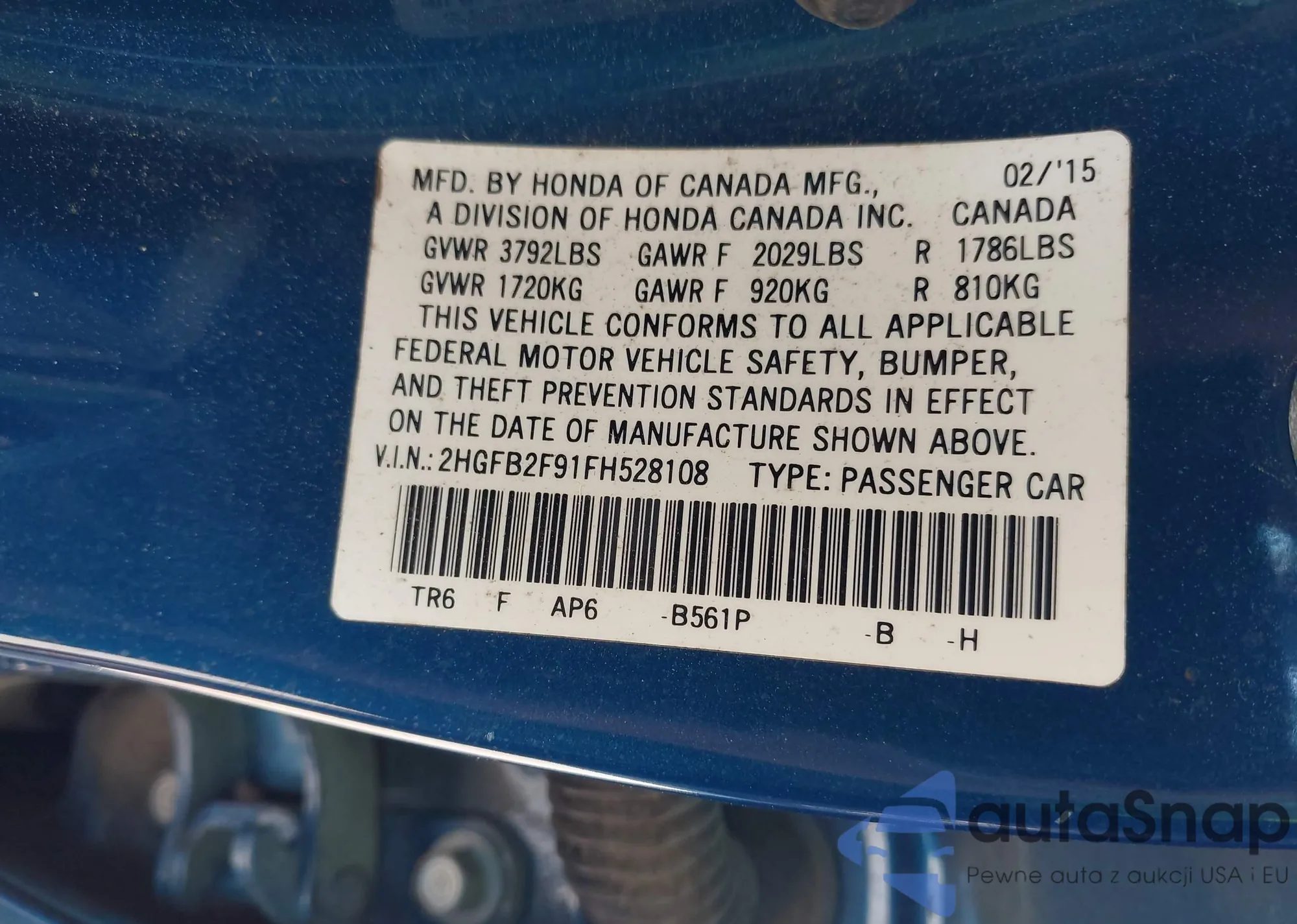 VIN: 2HGFB2F91FH528108