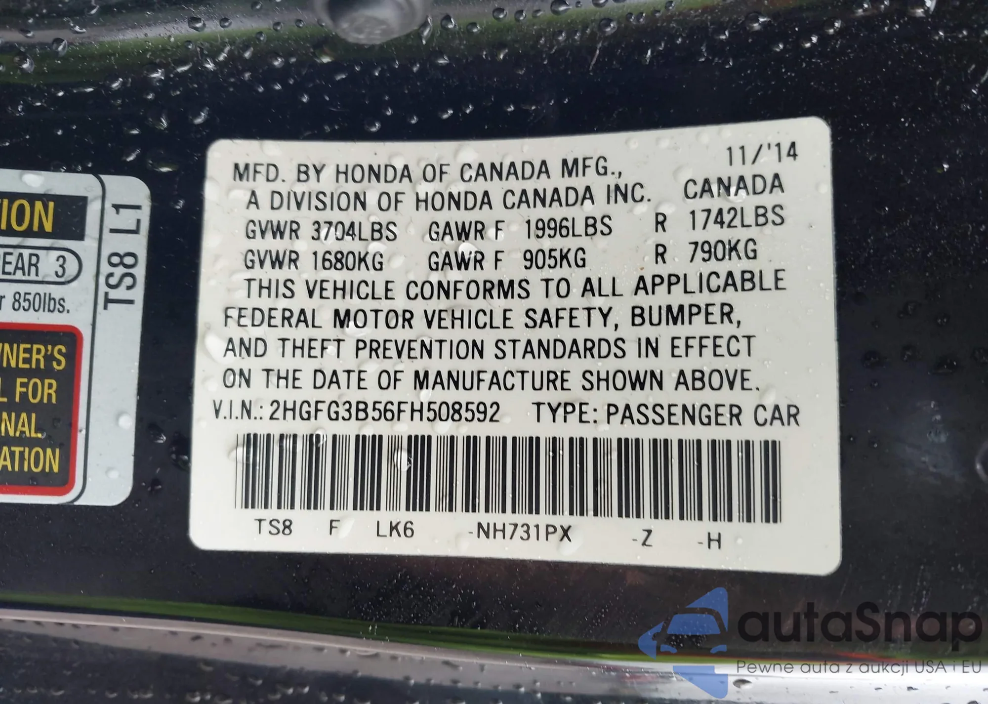VIN: 2HGFG3B56FH508592
