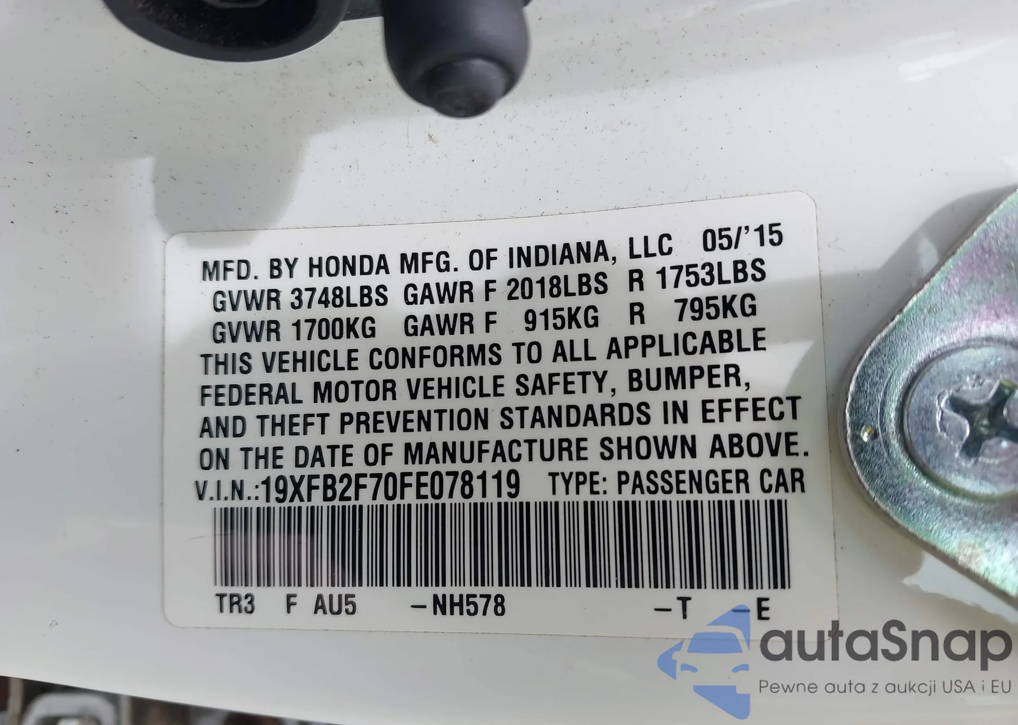 VIN: 19XFB2F70FE078119