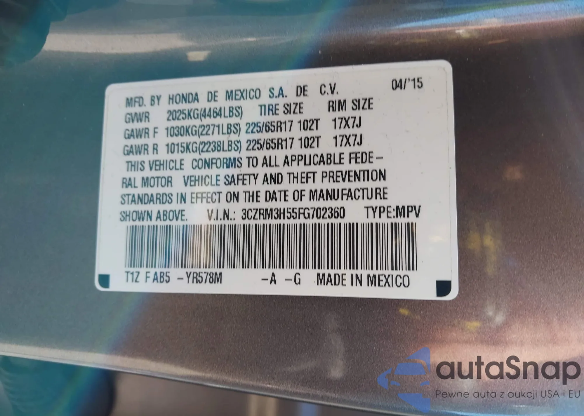 VIN: 3CZRM3H55FG702360