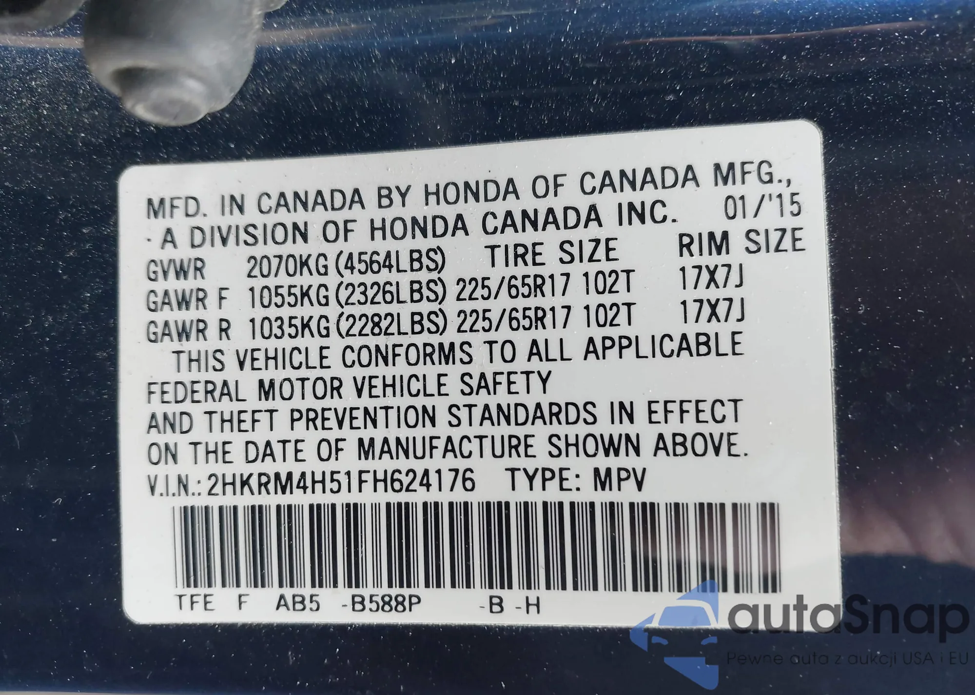 VIN: 2HKRM4H51FH624176
