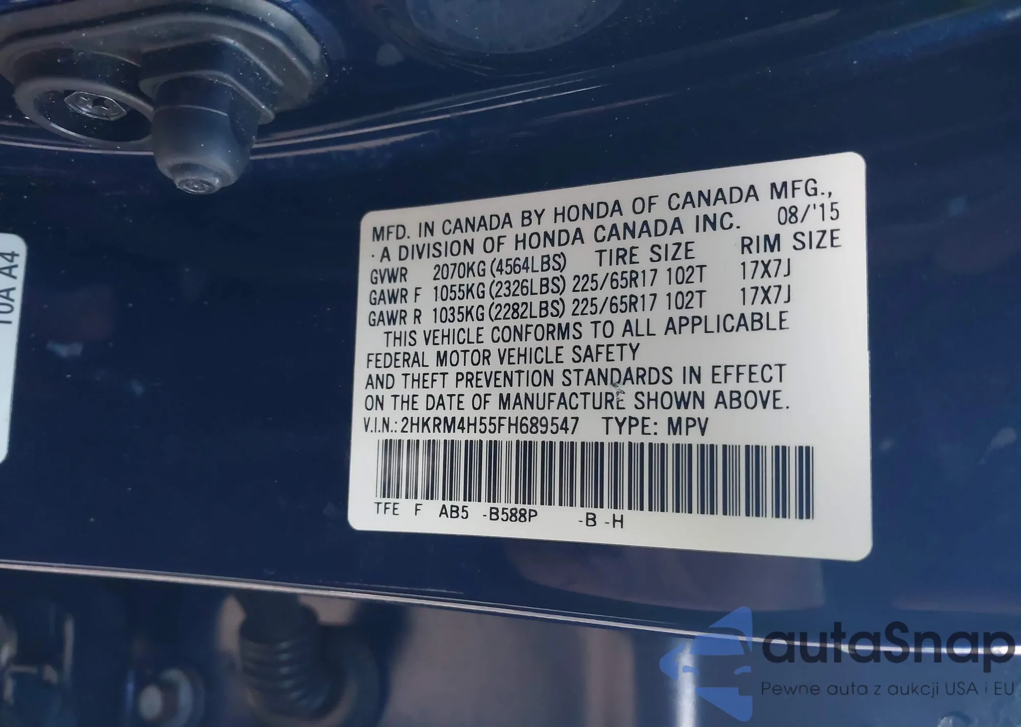 VIN: 2HKRM4H55FH689547
