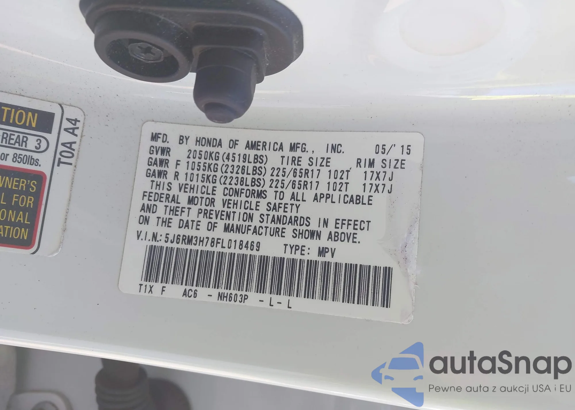 VIN: 5J6RM3H78FL018469