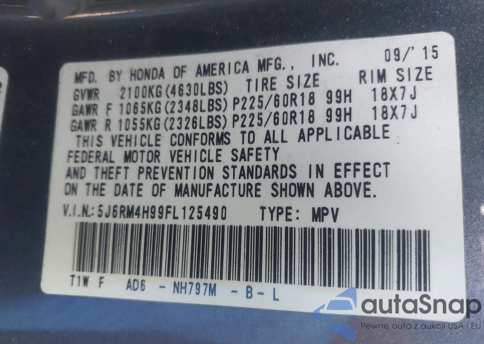 VIN: 5J6RM4H99FL125490