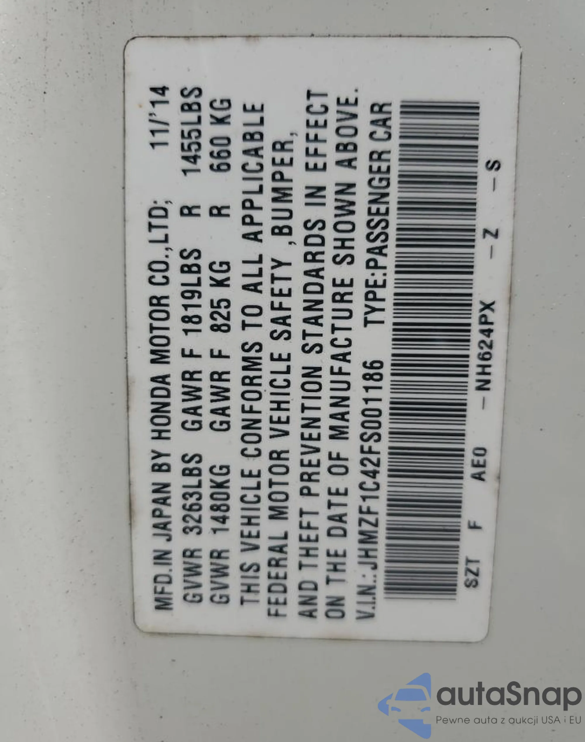 VIN: JHMZF1C42FS001186